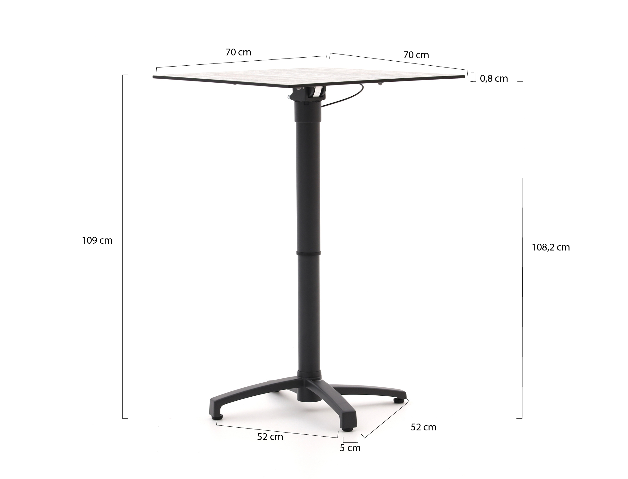 Kunststof tafelblad: Het blad is gemaakt van kunststof, wat het onderhoudsarm en eenvoudig te reinigen maakt.