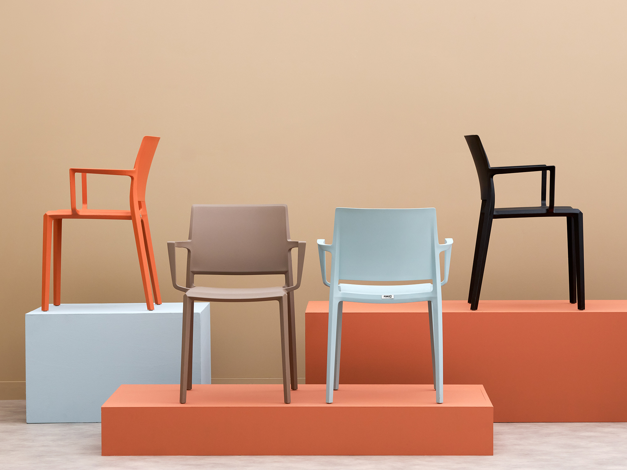 De stoelen zijn door-en-door gekleurd, waardoor kleine krassen minder opvallen