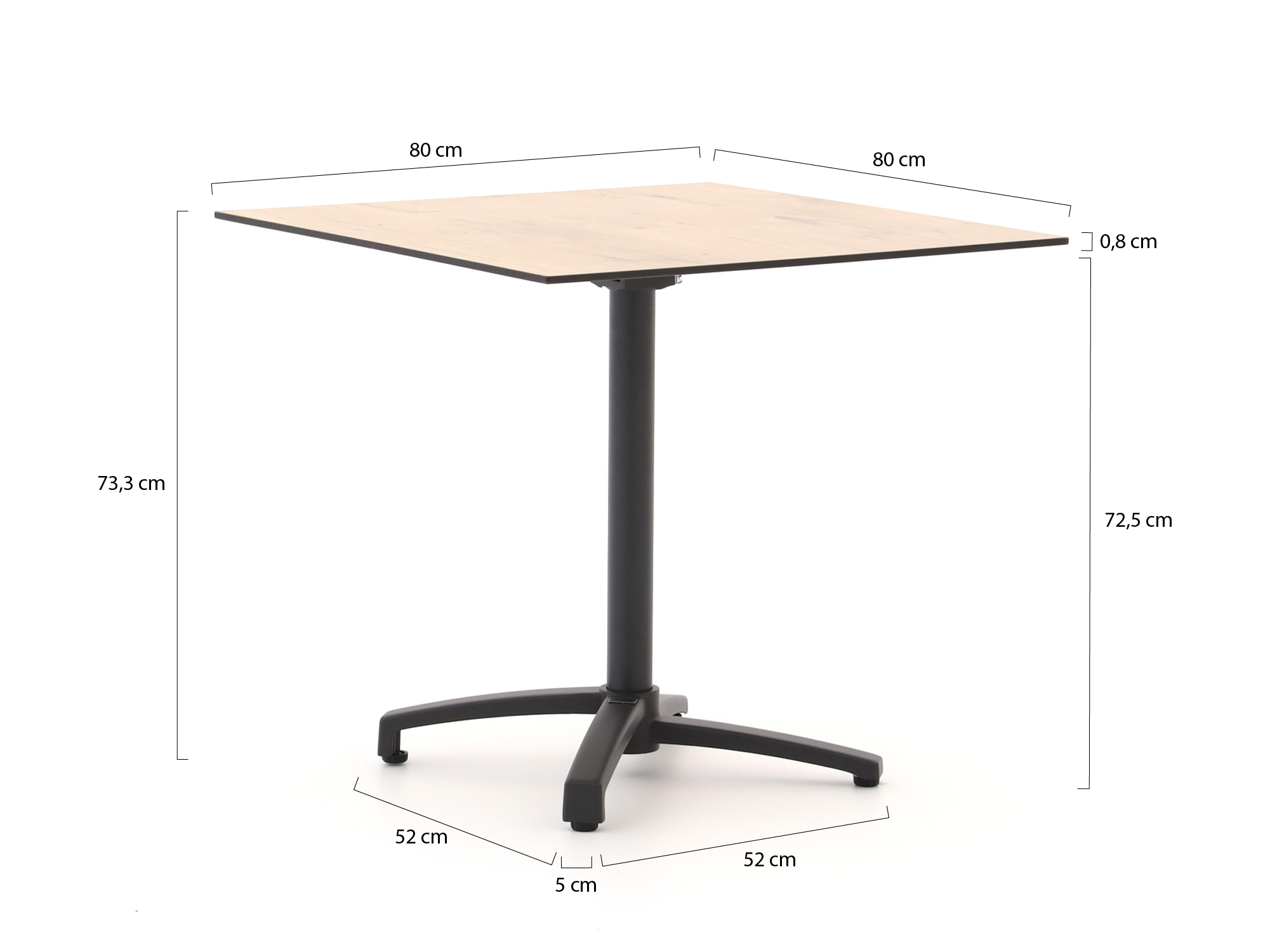 De Forza Sile/Canzo 80cm dining tuinset is als een trouwe vriend die je buitenruimte een flinke oppepper geeft. Met zijn strakke antracietkleurige frame en tafelblad in een warme teak-look, voegt deze set een vleugje moderne elegantie toe aan je tuin of balkon. Het slimme ontwerp maakt het mogelijk om de stoelen eenvoudig op te stapelen en de tafel in te klappen, ideaal voor wie graag ruimte bespaart zonder in te boeten op stijl. Het HPL tafelblad is niet alleen een lust voor het oog, maar ook kras- en vlekbestendig, zodat je je geen zorgen hoeft te maken over een onverwachte regenbui of een enthousiaste barbecueavond. Kortom, een praktische en stijlvolle keuze voor wie graag buiten dineert.