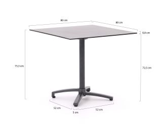 Compact en stijlvol: Met zijn 80 cm is de tafel groot genoeg voor vier personen, maar neemt hij niet te veel ruimte in beslag. Perfect voor kleinere tuinen of balkons.