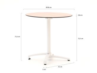 HPL tafelblad: Het tafelblad heeft een eikenhout-look, maar is gemaakt van HPL. Dat betekent dat het kras- en vlekbestendig is en er altijd netjes uitziet, ongeacht het weer.