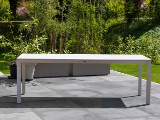 Als je dining tuinset vies is geworden, maak je deze eenvoudig schoon. Gebruik een doek en wat groene zeep om vuil te verwijderen. Dit is meestal voldoende om vuil en stof te verwijderen. Wij raden aan om je dining tuinset minstens twee keer per jaar grondig schoon te maken met een speciale reiniger. Voor het beste resultaat gebruik je dan onze Kees Smit Multi-surface reiniger, geschikt voor zowel het aluminium frame als het sintered stone tafelblad. Let op: gebruik géén hogedrukreiniger. Dit lijkt handig, maar kan het materiaal beschadigen.