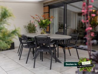 De Forza Vico dining tuinstoel zwart is een tuinstoel voor wie graag vaak aanschuift aan tafel met meerdere mensen, zonder dat het terras meteen vol staat. Deze stoel is stapelbaar, dus gebruik je er tien, dan stapel je ze na afloop zó weer op en zet je ze compact weg. Het kunststof frame en de kunststof zitting zijn licht van gewicht en vragen weinig onderhoud, waardoor je de stoelen makkelijk verplaatst en ze prima buiten kunnen staan. Ideaal als je een praktische, no nonsense tuinstoel zoekt voor aan je tuintafel.