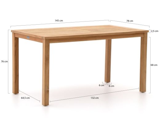 • Door het teakhouten tafelblad blijft de set bestand tegen alle weersomstandigheden