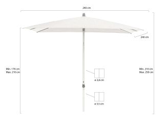 Deze parasol is direct klaar voor gebruik. Je hoeft alleen de mast in de voet te plaatsen en goed vast te zetten. Afhankelijk van het model kan het nodig zijn om de vul- of kruisvoet extra te verzwaren, zodat de parasol stevig blijft staan, ook bij wind. Met de duidelijke handleiding zorg je ervoor dat alles veilig en stabiel staat. Zo kun je direct genieten van fijne schaduw in je tuin!