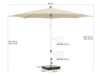 Deze parasol is direct klaar voor gebruik. Je hoeft alleen de mast in de voet te plaatsen en goed vast te zetten. Afhankelijk van het model kan het nodig zijn om de vul- of kruisvoet extra te verzwaren, zodat de parasol stevig blijft staan, ook bij wind. Met de duidelijke handleiding zorg je ervoor dat alles veilig en stabiel staat. Zo kun je direct genieten van fijne schaduw in je tuin!