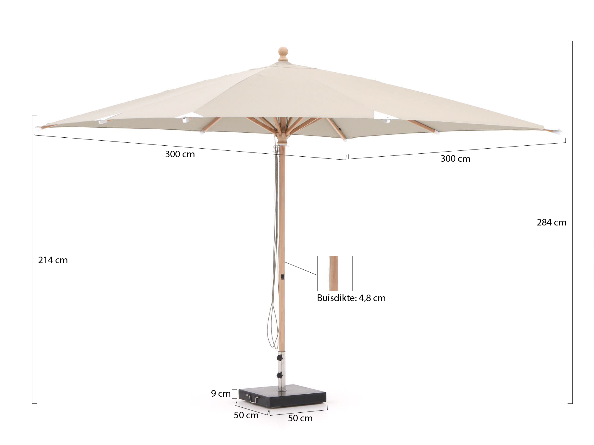 Wordt geleverd met een stevige parasolvoet van 60 kg