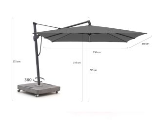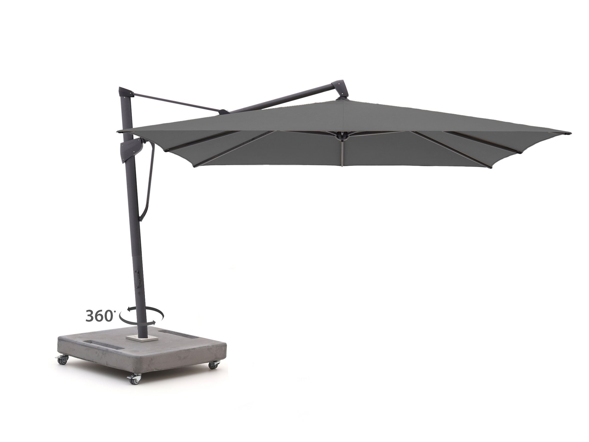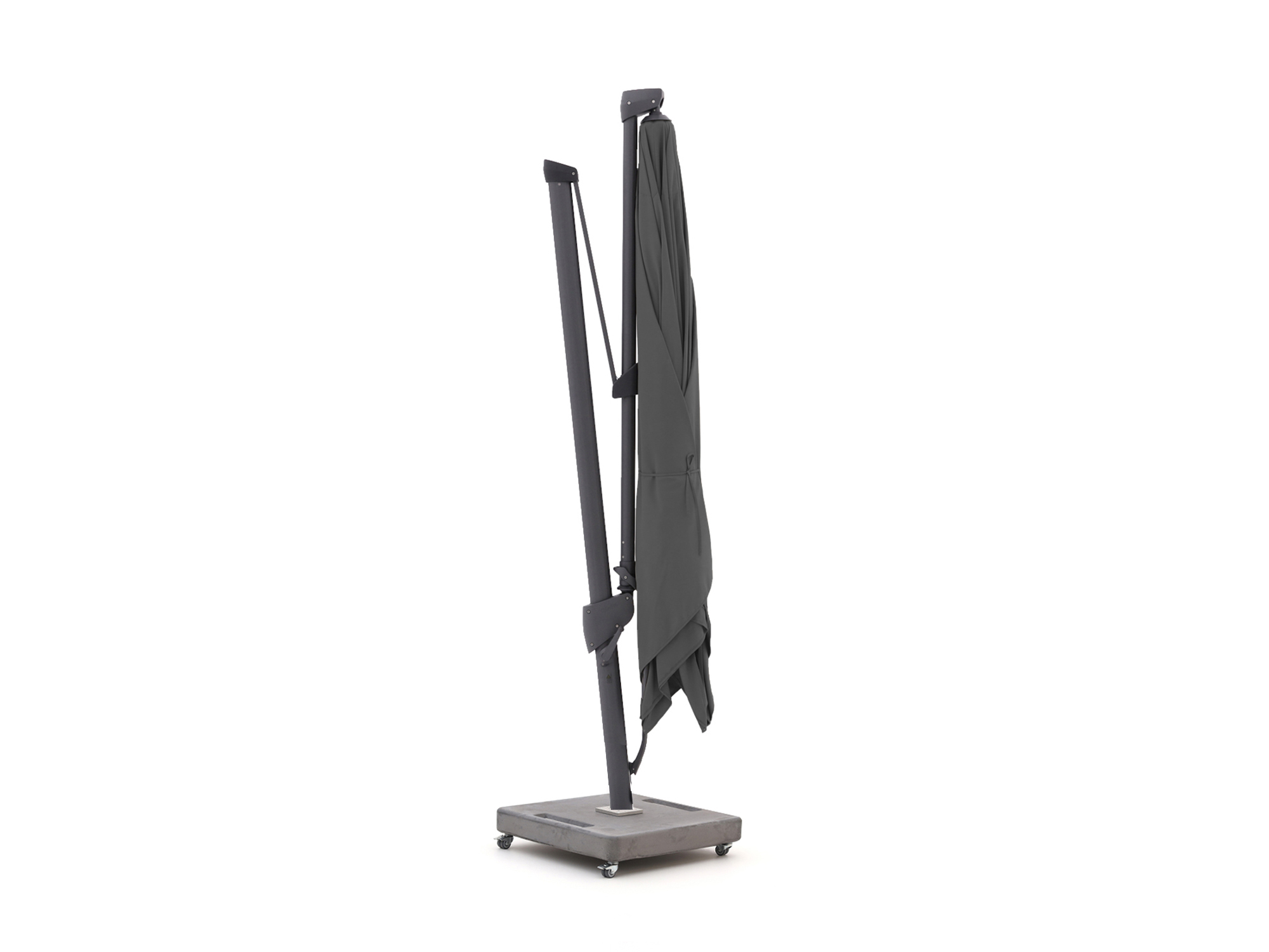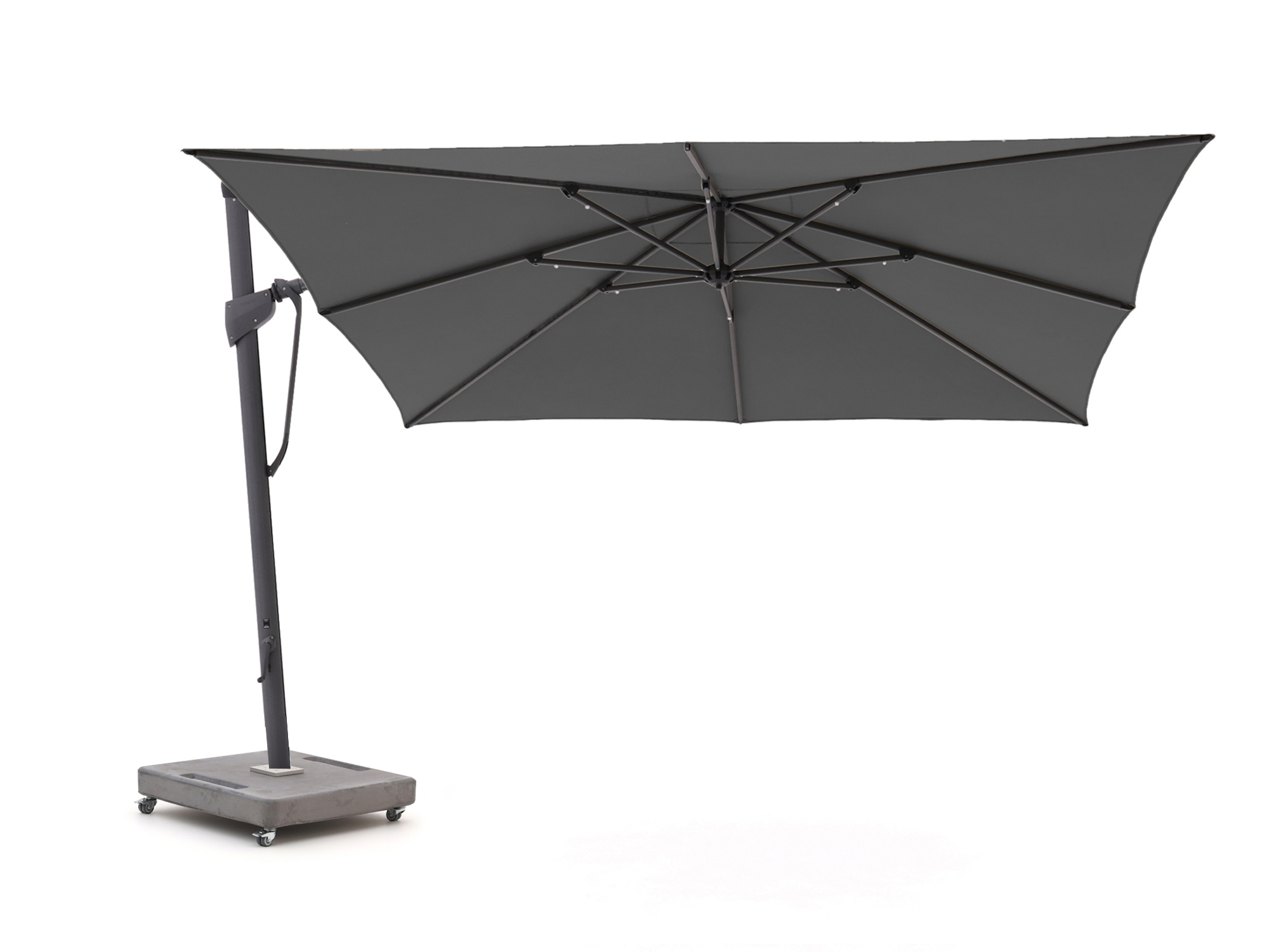 Vierkant ontwerp: Met zijn strakke vierkante vorm past deze parasol perfect boven een ruime eettafel of een grote loungeset. Ideaal voor lange zomeravonden met vrienden en familie.