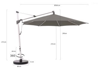 Inclusief parasolvoet: De parasol wordt geleverd met een stevige Shadowline voet van 140 kg, waardoor hij direct klaar is voor gebruik en altijd stabiel staat.