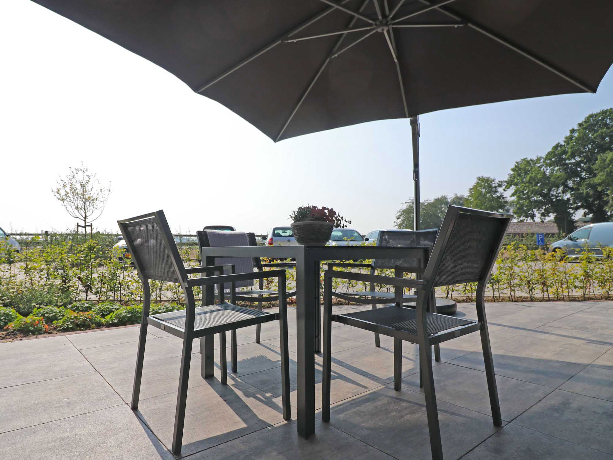 Je draait de parasol in 360 graden makkelijk met de zon mee. Zo zit je de hele dag lekker in de schaduw, zonder je stoel te verplaatsen.