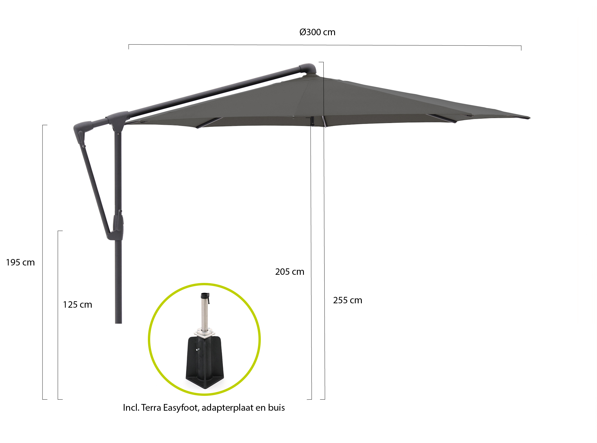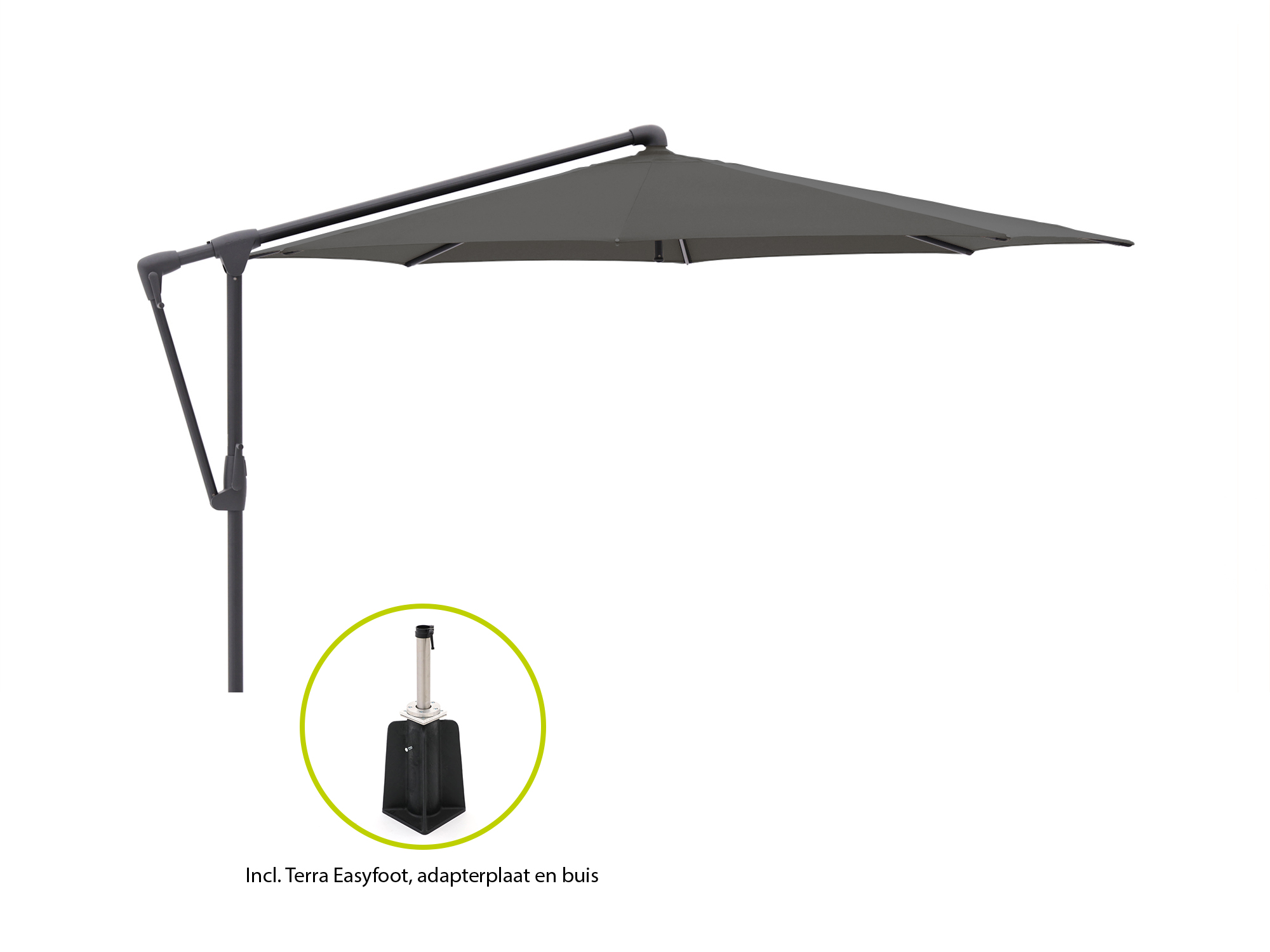 Inclusief Terra Easyfoot: De parasol wordt geleverd met een stevige voet, zodat hij altijd stabiel staat en direct klaar is voor gebruik. Superhandig!