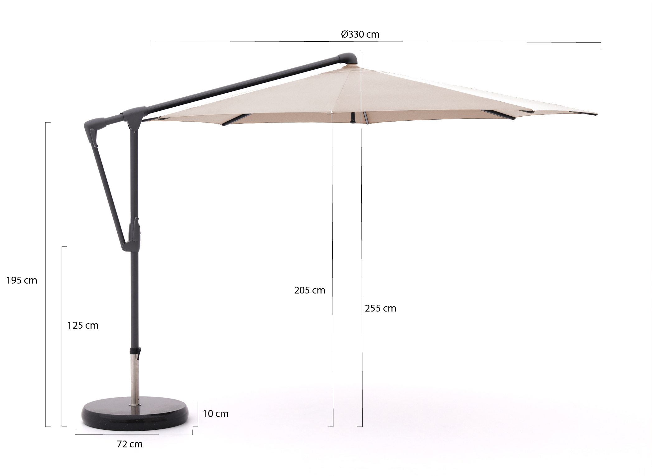Deze parasol is direct klaar voor gebruik. Je hoeft alleen de mast in de voet te plaatsen en goed vast te zetten. Afhankelijk van het model kan het nodig zijn om de vul- of kruisvoet extra te verzwaren, zodat de parasol stevig blijft staan, ook bij wind. Met de duidelijke handleiding zorg je ervoor dat alles veilig en stabiel staat. Zo kun je direct genieten van fijne schaduw in je tuin!
