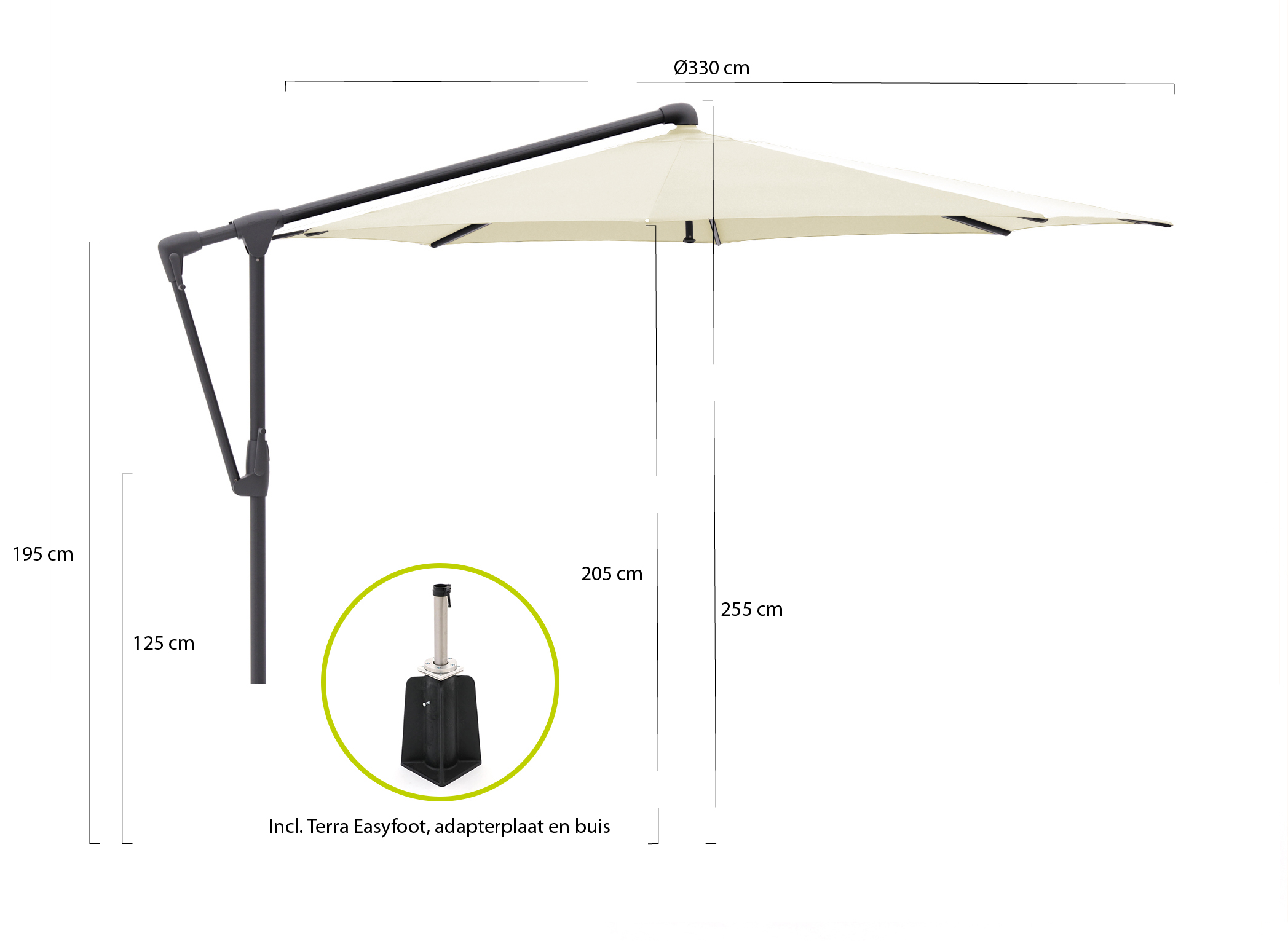 Deze parasol is direct klaar voor gebruik. Je hoeft alleen de mast in de voet te plaatsen en goed vast te zetten. Afhankelijk van het model kan het nodig zijn om de vul- of kruisvoet extra te verzwaren, zodat de parasol stevig blijft staan, ook bij wind. Met de duidelijke handleiding zorg je ervoor dat alles veilig en stabiel staat. Zo kun je direct genieten van fijne schaduw in je tuin!