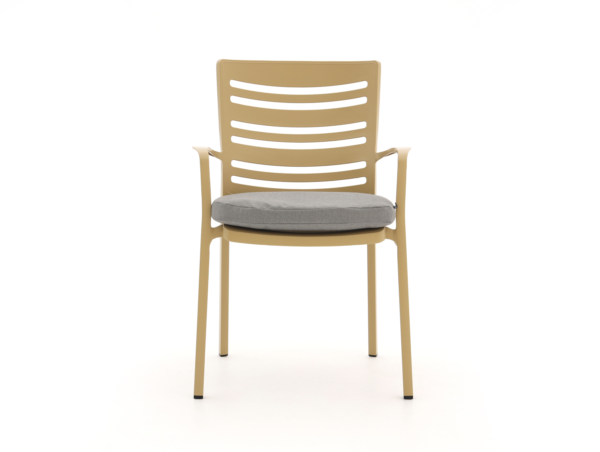 De Hartman Alexandra dining tuinstoel beige is een tuinstoel voor wie graag lang en rechtop aan tafel zit, met nét wat extra zachtheid door het meegeleverde grijze kussen. Dankzij het aluminium frame en de kunststof zitting kun je deze stoel makkelijk verplaatsen rondom je tuintafel en schuif je soepel aan en af. Aluminium is licht van gewicht, roest niet en vraagt weinig onderhoud, terwijl de kunststof zitting stevig is en goed tegen een buitje kan. De stoel is stapelbaar, dus heb je meerdere stoelen staan, dan stapel je ze zo op elkaar als je je terras even leeg wilt maken.