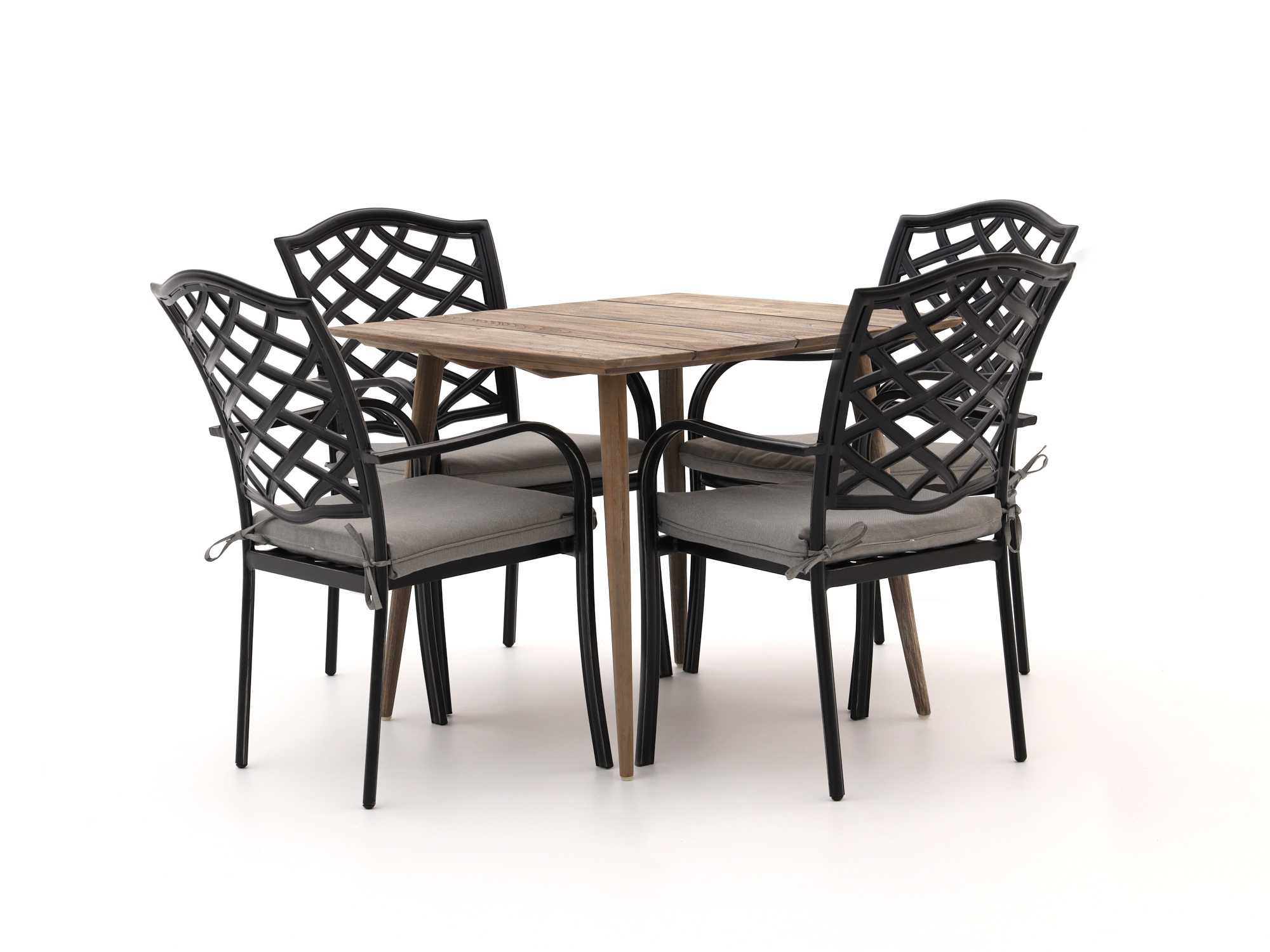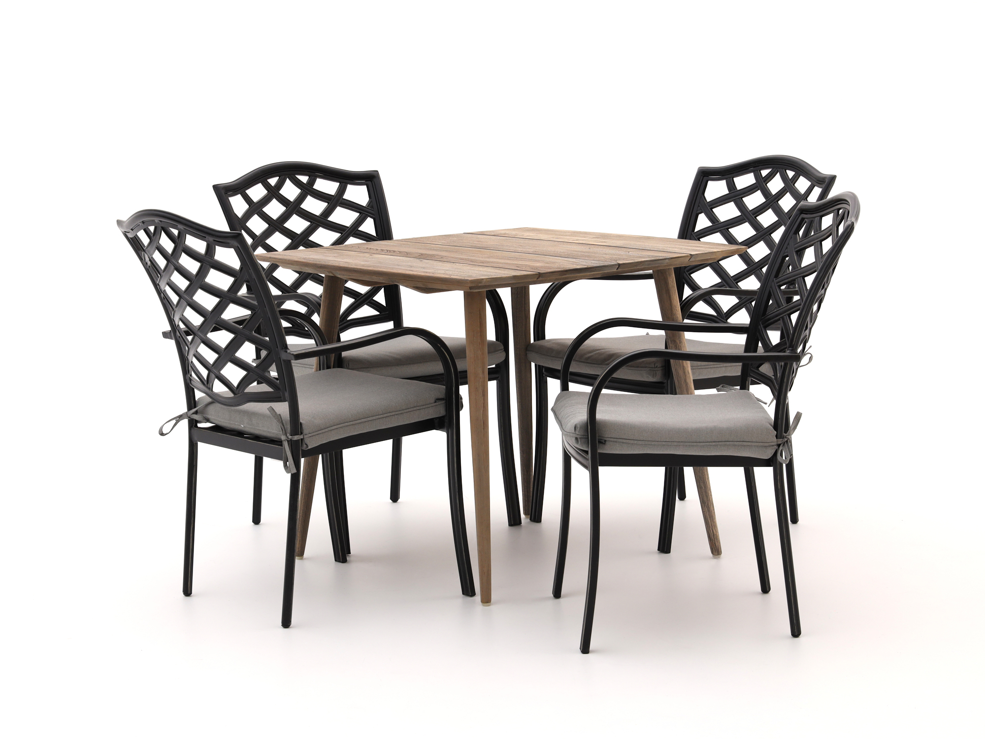 Teakhouten tafelblad: Dit materiaal is bestand tegen alle weersomstandigheden en zorgt voor een stevige constructie zonder splinters. Perfect voor jarenlang plezier in de tuin!