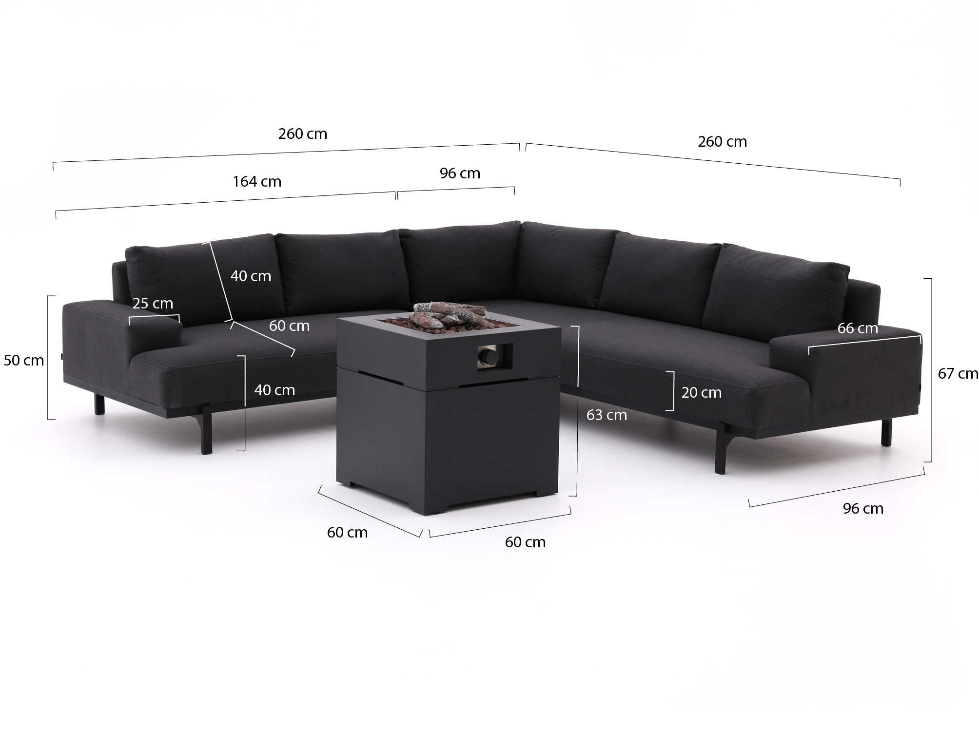 Hartman Lucas/Cosibrixx 60cm hoek loungeset met vuurtafel 3-delig
