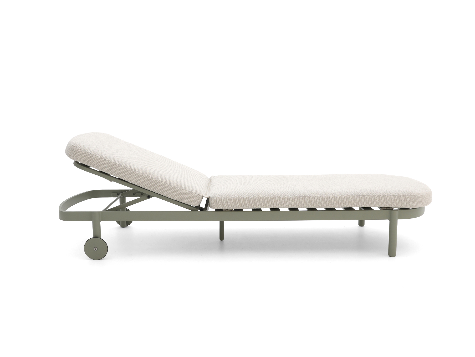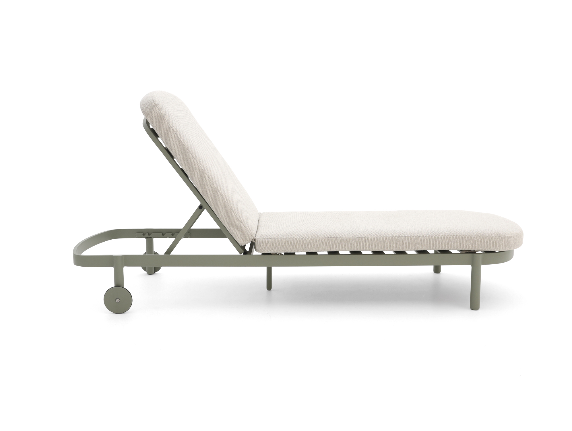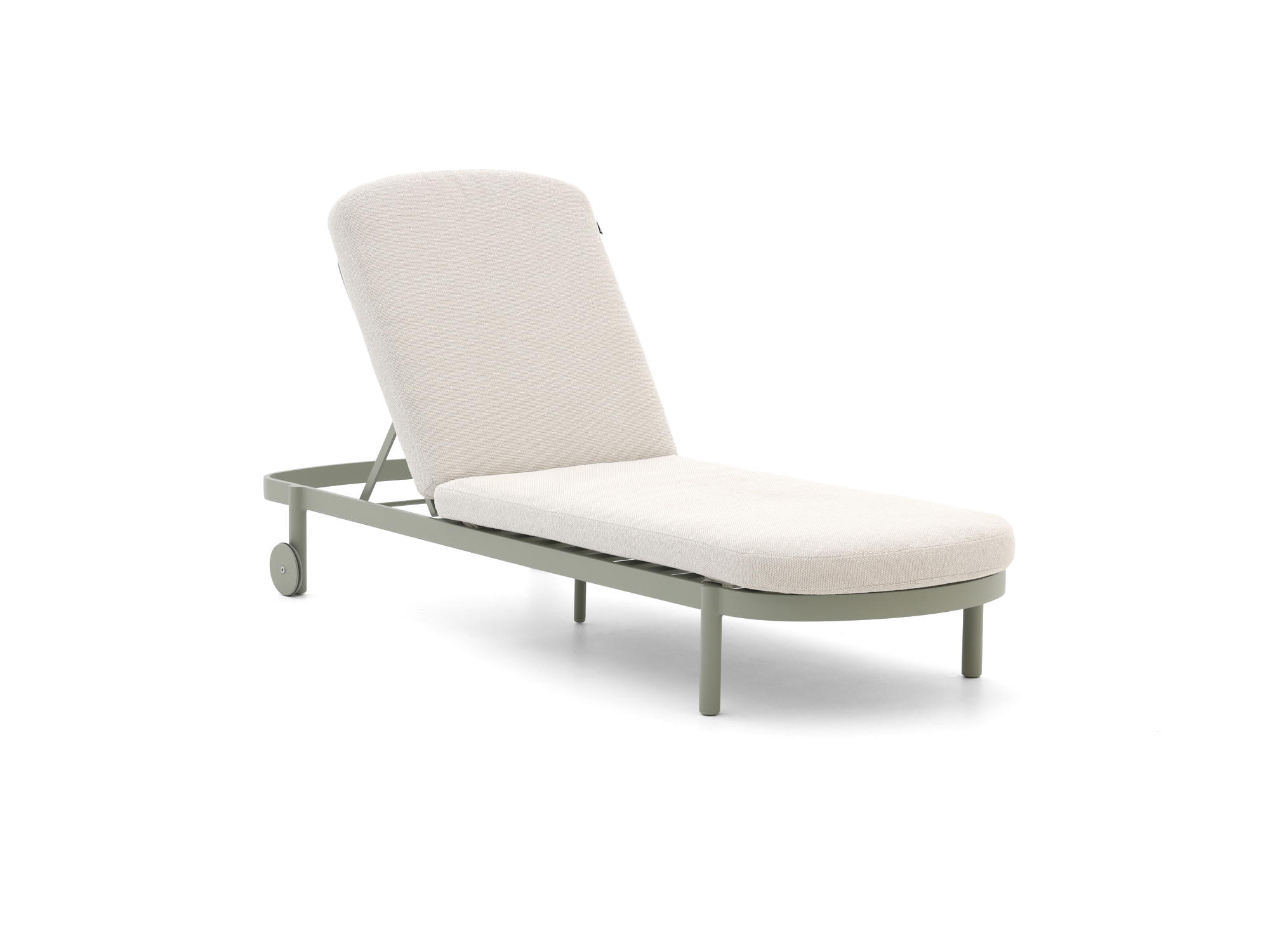 Het Hartman Palma ligbed in groen is voor iedereen die echt languit wil liggen, zonder gedoe, en graag lekker zacht ligt dankzij het meegeleverde beige kussen. Het aluminium frame is licht van gewicht en kan niet doorroesten, dus je sleept het makkelijk over je terras en laat het met een gerust hart buiten staan. De zitting van rope (touw) vormt zich prettig mee en droogt snel op na een buitje, waardoor je niet lang hoeft te wachten om weer neer te ploffen. Dankzij de verstelbare rugleuning kies je zelf of je wilt lezen, zonnen of even een powernap wil pakken. En met het wiel aan het ligbed rol je hem zo mee met de zon, zonder dat je hoeft te sjouwen.