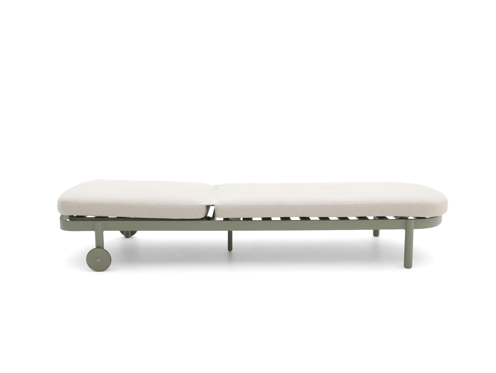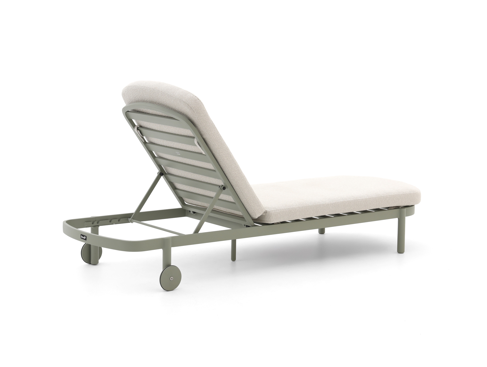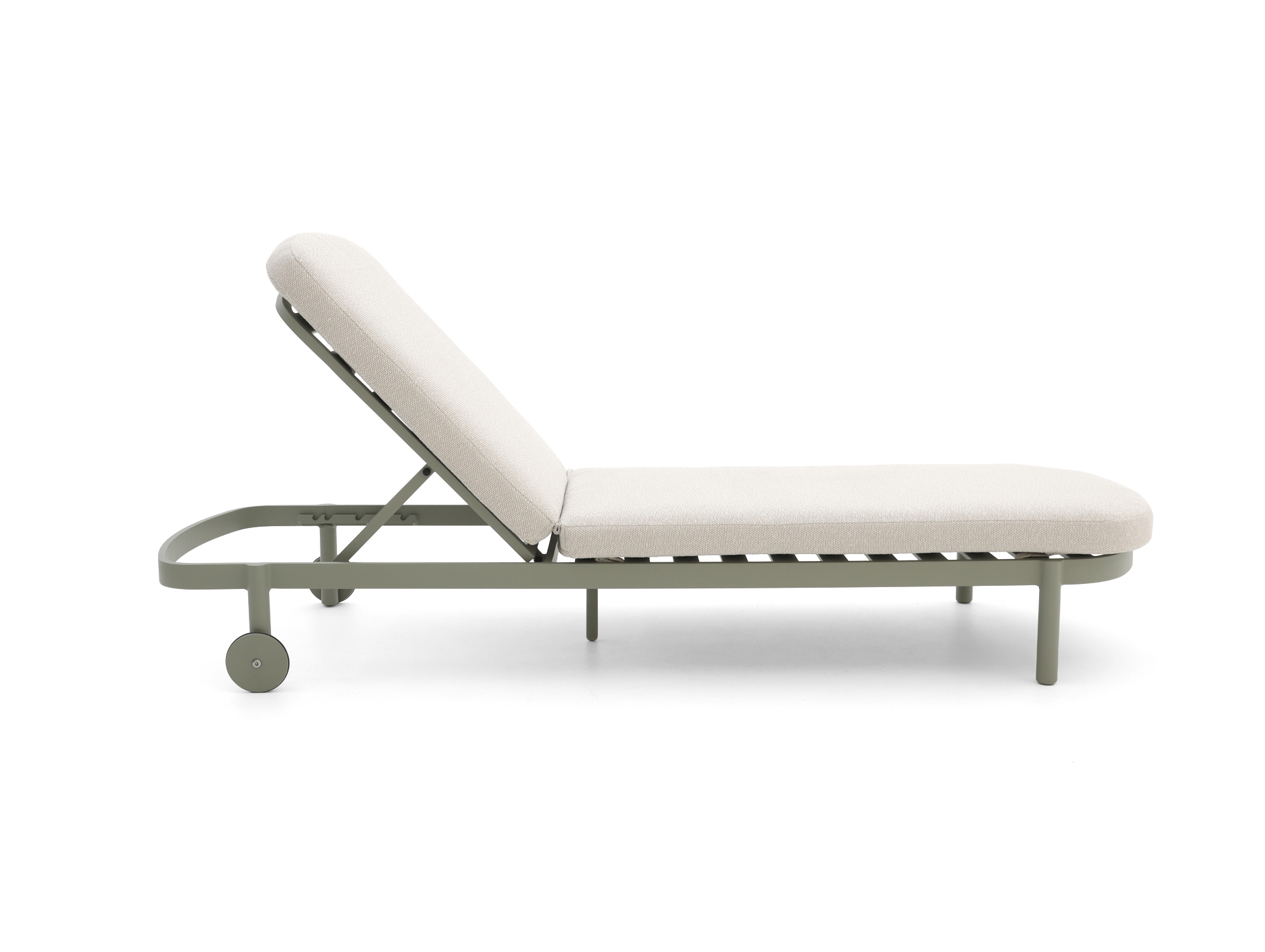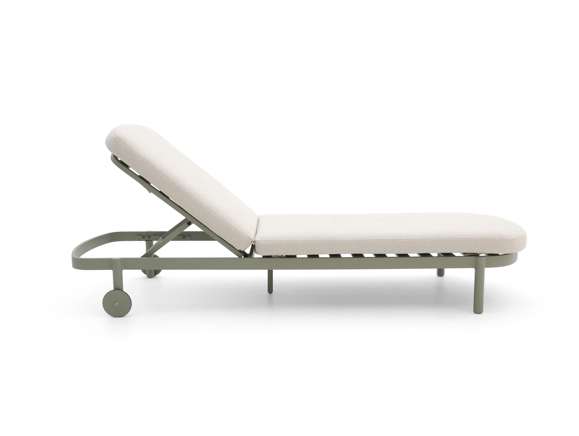 Het Hartman Palma ligbed in groen is voor iedereen die echt languit wil liggen, zonder gedoe, en graag lekker zacht ligt dankzij het meegeleverde beige kussen. Het aluminium frame is licht van gewicht en kan niet doorroesten, dus je sleept het makkelijk over je terras en laat het met een gerust hart buiten staan. De zitting van rope (touw) vormt zich prettig mee en droogt snel op na een buitje, waardoor je niet lang hoeft te wachten om weer neer te ploffen. Dankzij de verstelbare rugleuning kies je zelf of je wilt lezen, zonnen of even een powernap wil pakken. En met het wiel aan het ligbed rol je hem zo mee met de zon, zonder dat je hoeft te sjouwen.