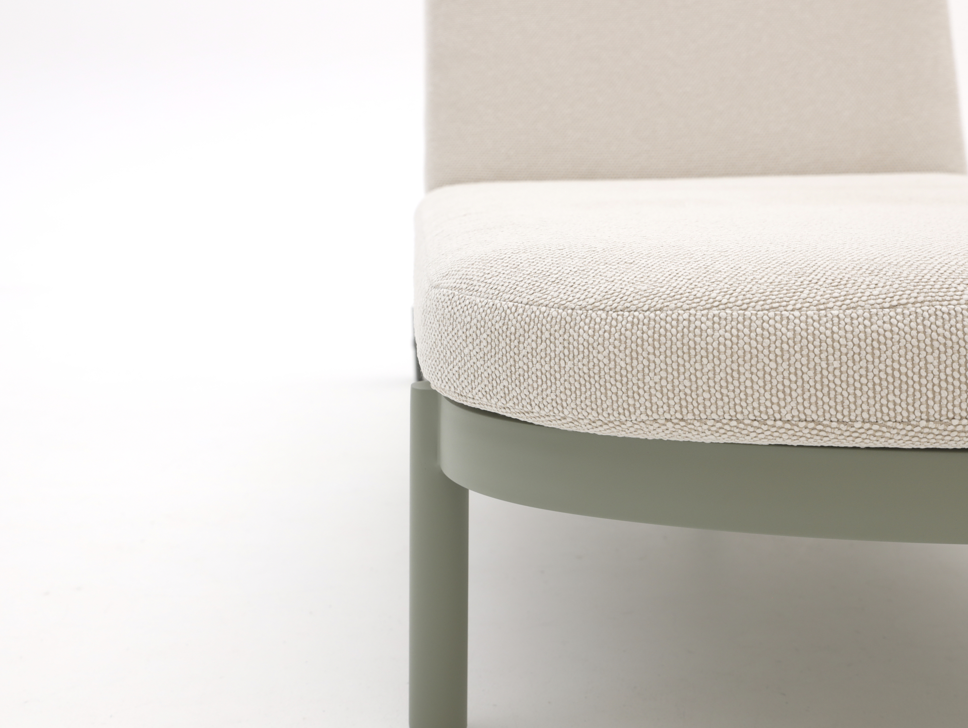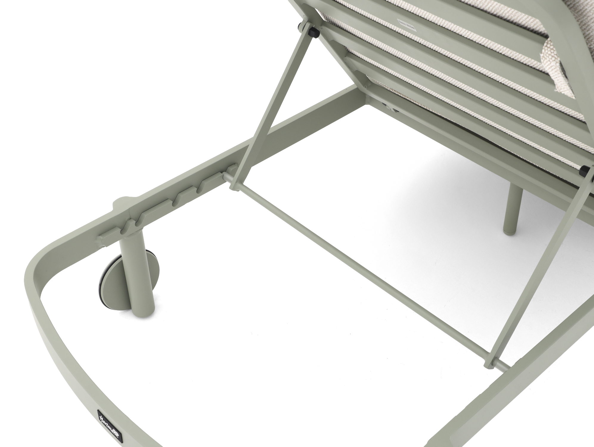 • Aluminium frame: Licht en sterk, zodat je het ligbed makkelijk verplaatst en het gerust buiten kunt laten staan.
