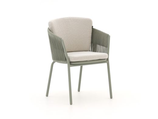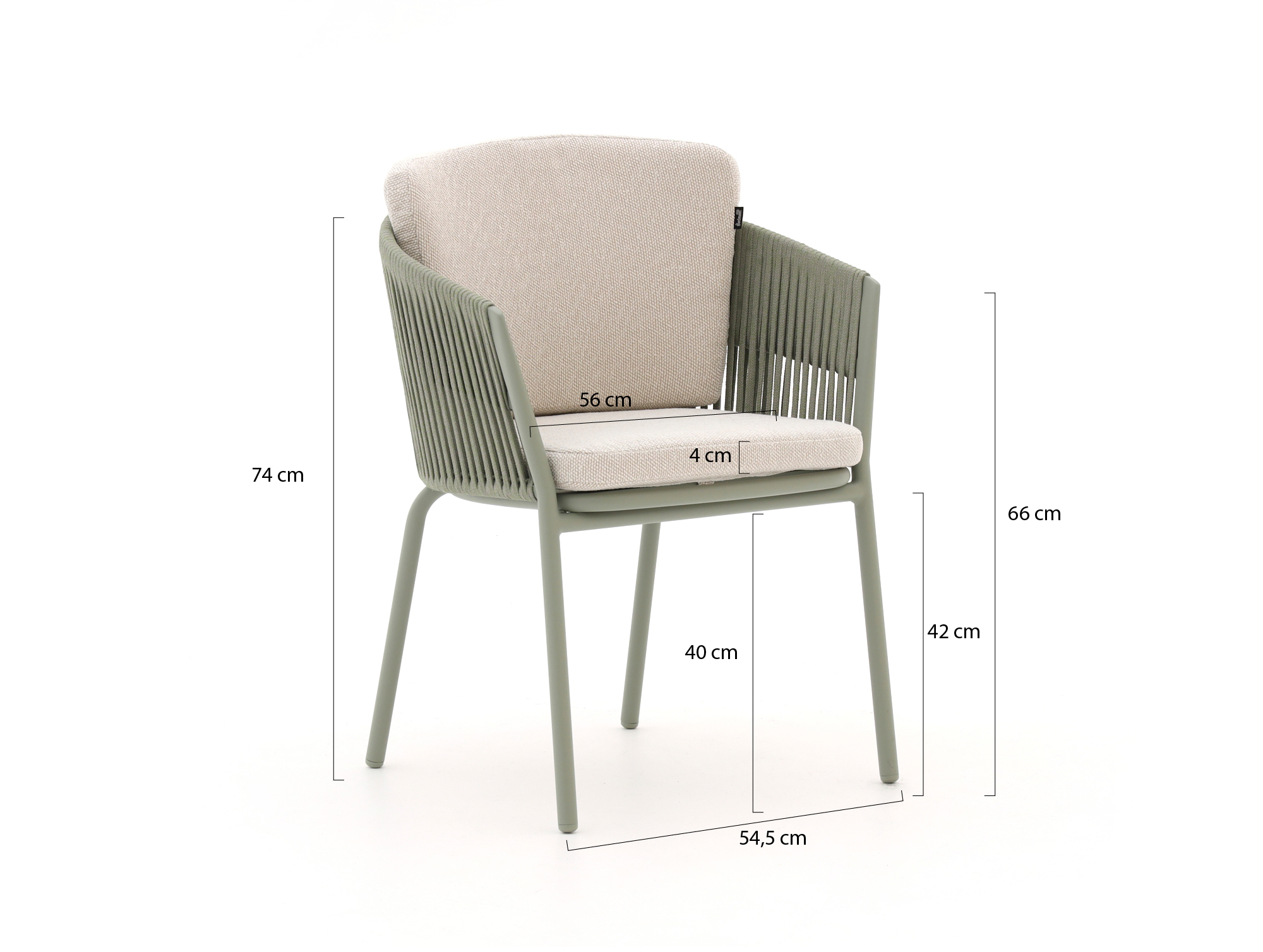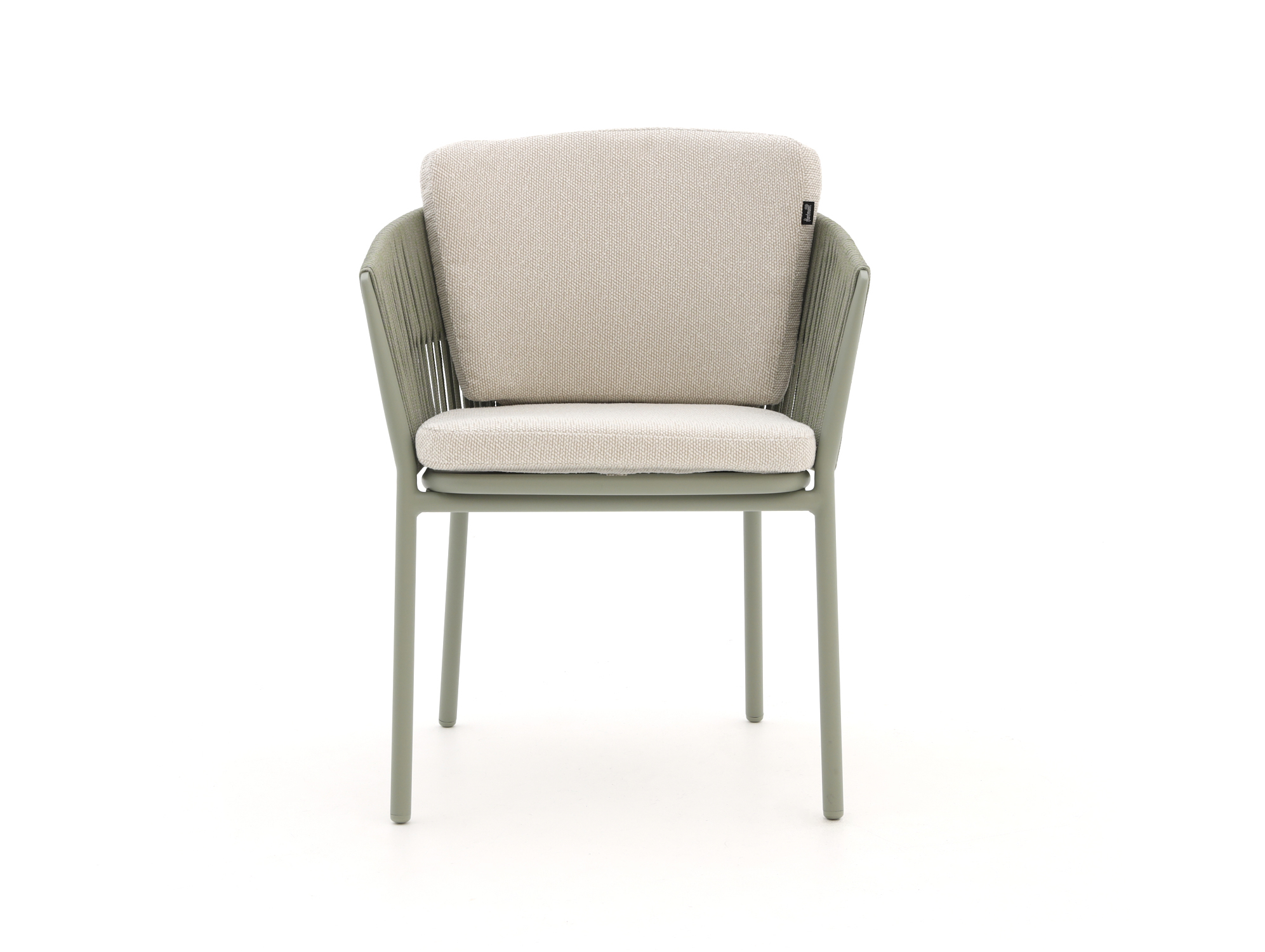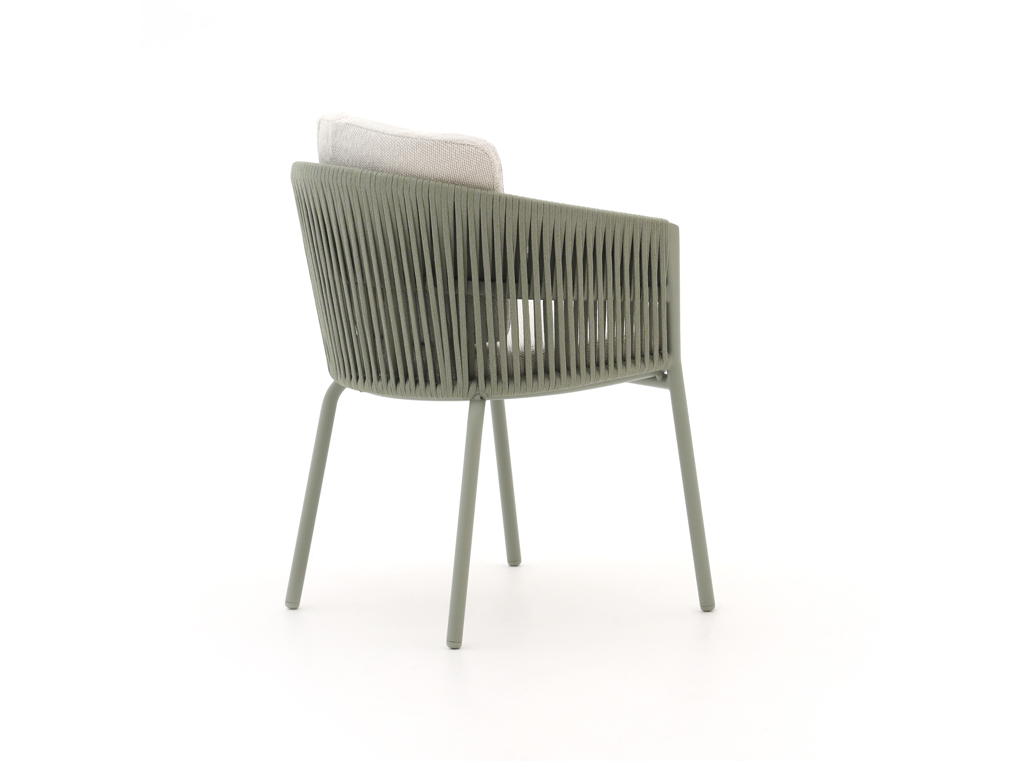 De Hartman Sevilla dining tuinstoel groen is een fijne tuinstoel als je graag lang aan tafel zit, maar je terras wel rustig en luchtig wilt houden. De combinatie van een aluminium frame met een groene rope zitting geeft een stevige, maar toch verende zit, ideaal voor lange etentjes of een avondje borrelen. Dankzij het meegeleverde kussen zit je net wat zachter en blijf je automatisch wat langer comfortabel aan tafel. Het aluminium is licht van gewicht, kan niet doorroesten en vraagt weinig onderhoud. De rope zitting droogt snel op na een regenbui en wordt niet heet in de volle zon, zodat je de stoel op warme dagen gewoon kunt blijven gebruiken.