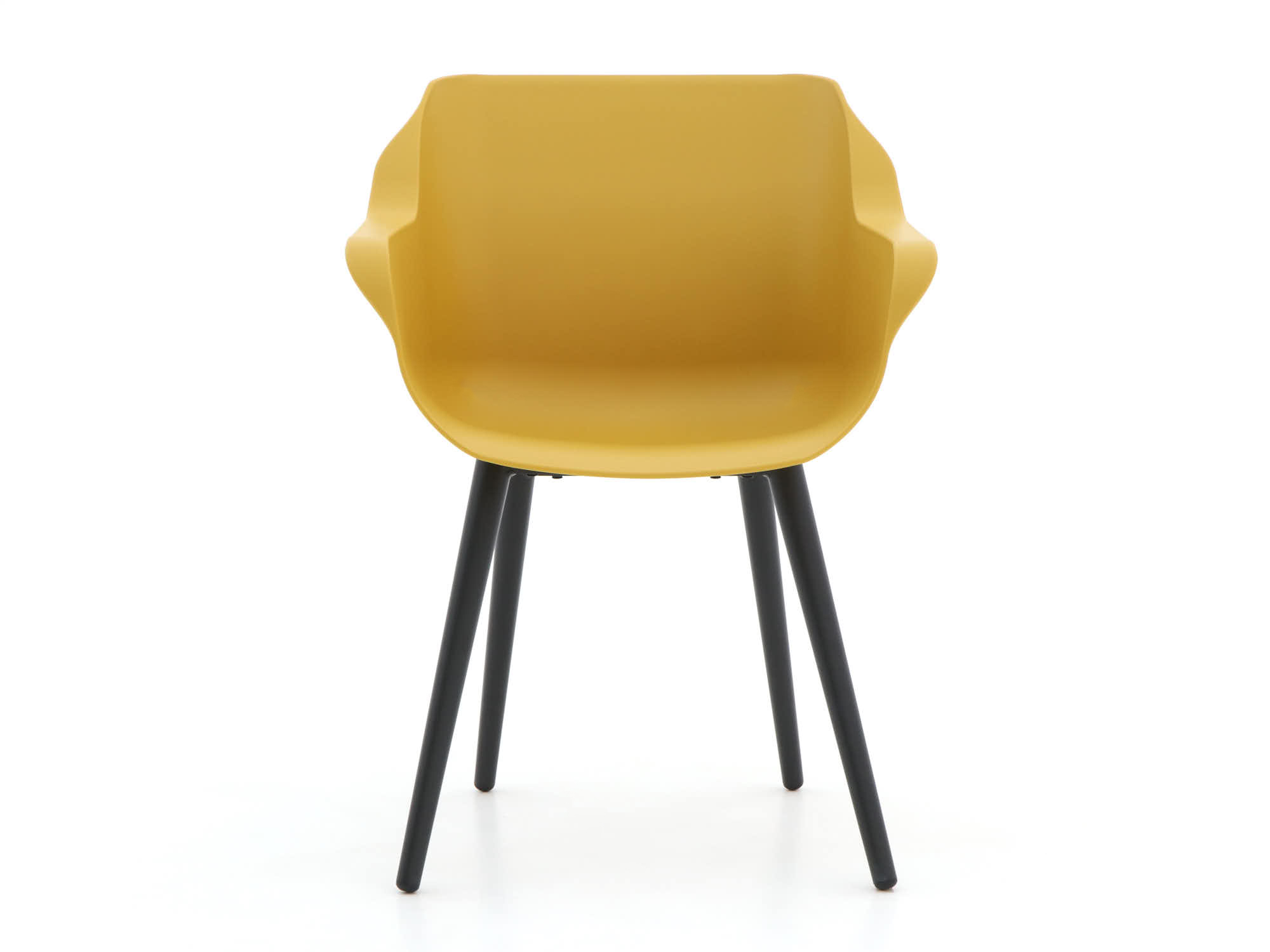 Ben je op zoek naar een tuinset die niet alleen praktisch is, maar ook een echte eyecatcher in je tuin? Dan is de Hartman Sophie Studio dining tuinset precies wat je zoekt! Met zijn vrolijke currygele kleur en ronde vorm is deze set een uitnodiging voor gezellige etentjes in de buitenlucht. Het ronde ontwerp zorgt ervoor dat iedereen makkelijk met elkaar kan praten, ideaal voor lange, gezellige maaltijden. Het HPL tafelblad is kras- en vlekbestendig, dus je hoeft je geen zorgen te maken over knoeien. Bovendien is het weer- en UV-bestendig, waardoor het zijn uitstraling behoudt, ongeacht het weer. Tijd om je tuin een frisse, energieke uitstraling te geven en volop te genieten van het buitenleven!