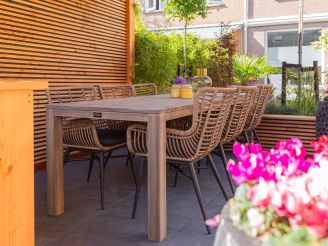 Wil je je tuinset extra beschermen tegen water en vuil? Dan kun je een beschermende laag aanbrengen met onze Kees Smit Teak & Hardhout shield voor het tafelblad en Kees Smit Multi-surface beschermer voor de kunststof zittingen. Zo blijft je tuinset langer mooi en hoef je minder vaak schoon te maken. Dat is wel zo fijn!