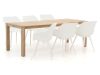 Met de Hartman Sophie Studio/ROUGH-S 220cm dining tuinset haal je een vleugje elegantie en comfort naar je tuin. Deze 7-delige set in de kleur Royal White is niet alleen een lust voor het oog, maar ook een praktische keuze voor gezellige etentjes in de buitenlucht. De combinatie van een robuuste teakhouten tafel en zes comfortabele kunststof stoelen zorgt ervoor dat je urenlang kunt tafelen zonder in te leveren op stijl of gemak. Het aluminium frame van de stoelen is stevig en onderhoudsarm, waardoor je meer tijd hebt om te genieten van je gezelschap en minder tijd kwijt bent aan onderhoud. En met de ruime afmetingen van de tafel is er altijd plek voor een extra bordje of een grote schaal met lekkernijen.