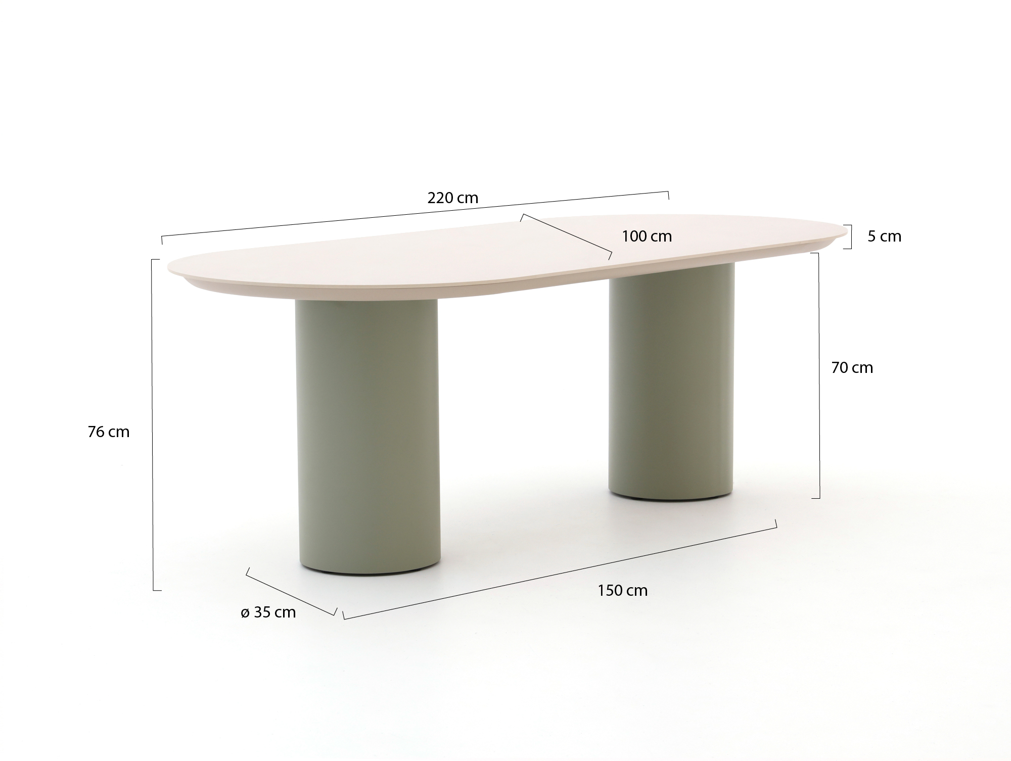 • Ruime tafel van 220 cm: Je zet zonder gedoe 6 stoelen aan tafel en houdt nog plek over voor pannen, salades en drinken.