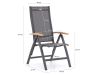 • 6 verstelbare stoelen met textileen zitting: Je stelt de rugleuning naar wens in en zit comfortabel zonder losse kussens die je steeds moet opbergen.