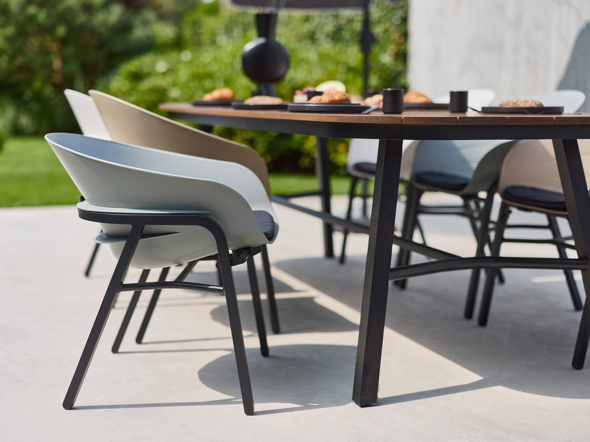 • Verstelbare stoelen: Met één simpele beweging zet je de rugleuning van rechtop naar relaxstand, ideaal als een etentje langzaam verandert in een lange avond borrelen.