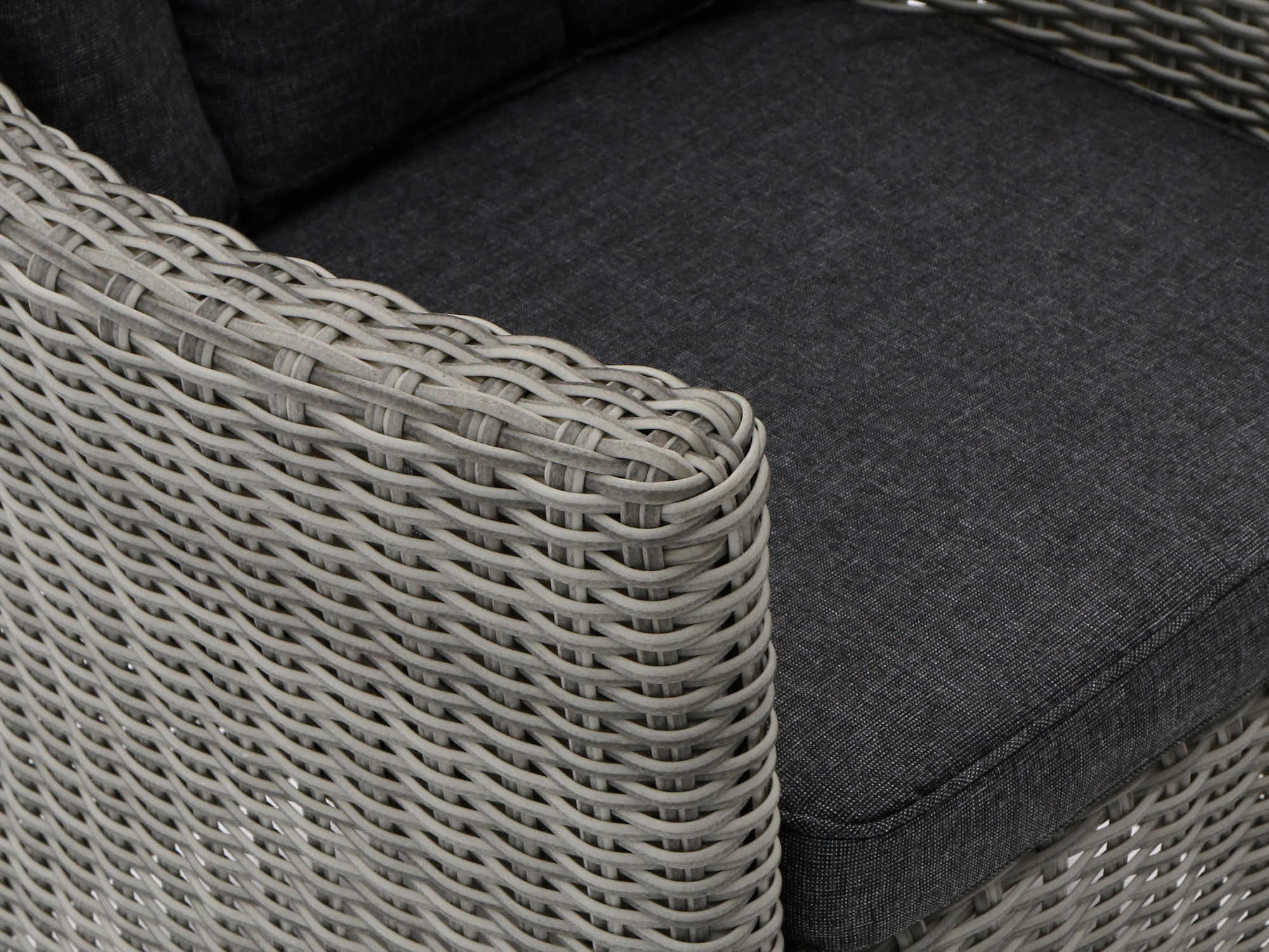 Stabiele constructie: Dankzij het stevige teakhouten onderstel en het extra dikke wicker frame hoef je je geen zorgen te maken over wiebelende stoelen of tafels.