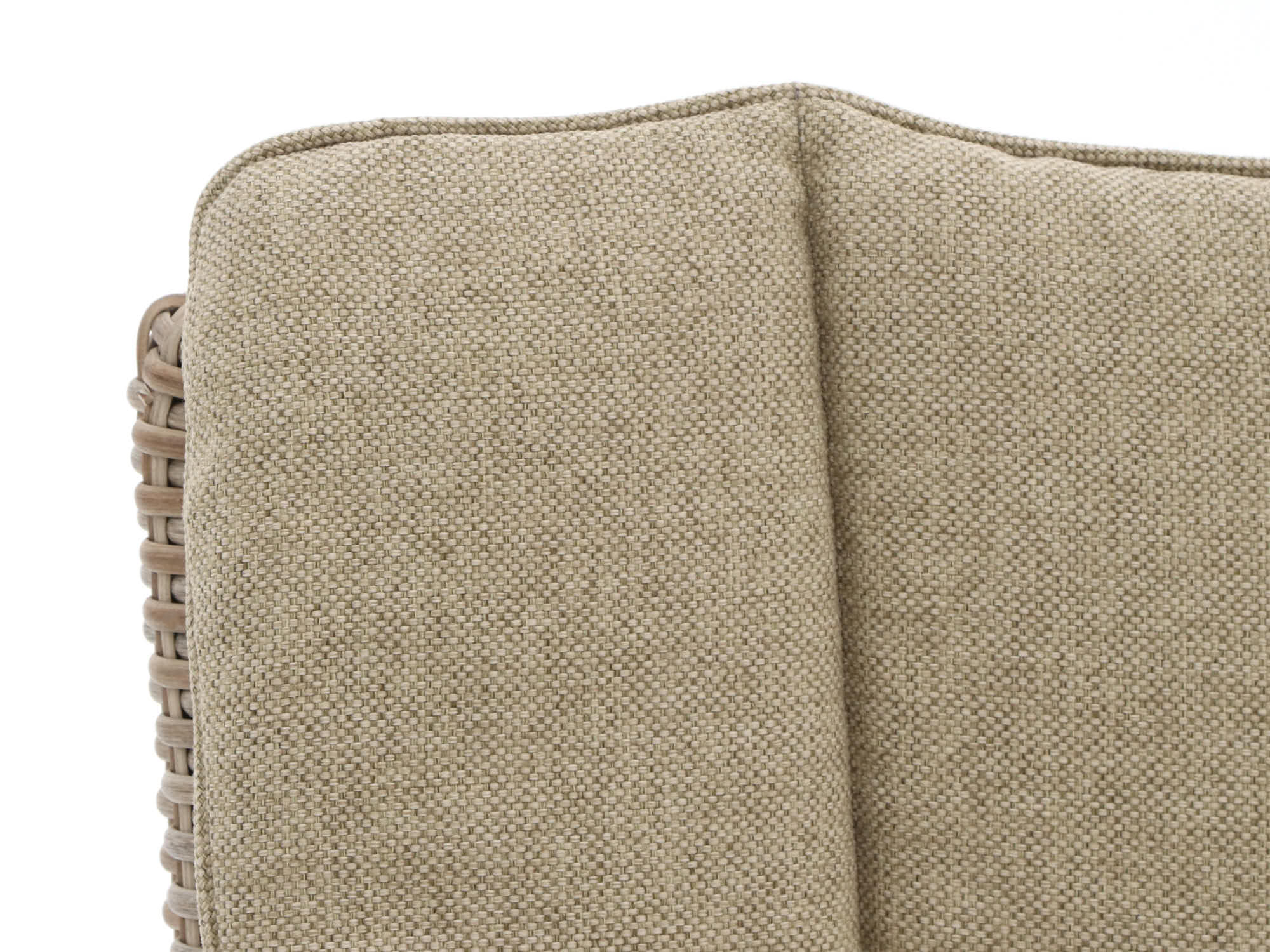 • Neutrale kleuren: De beige stoelen met zandkleurige kussens en het grijzige teakhout laten zich makkelijk combineren met je andere tuinspullen.