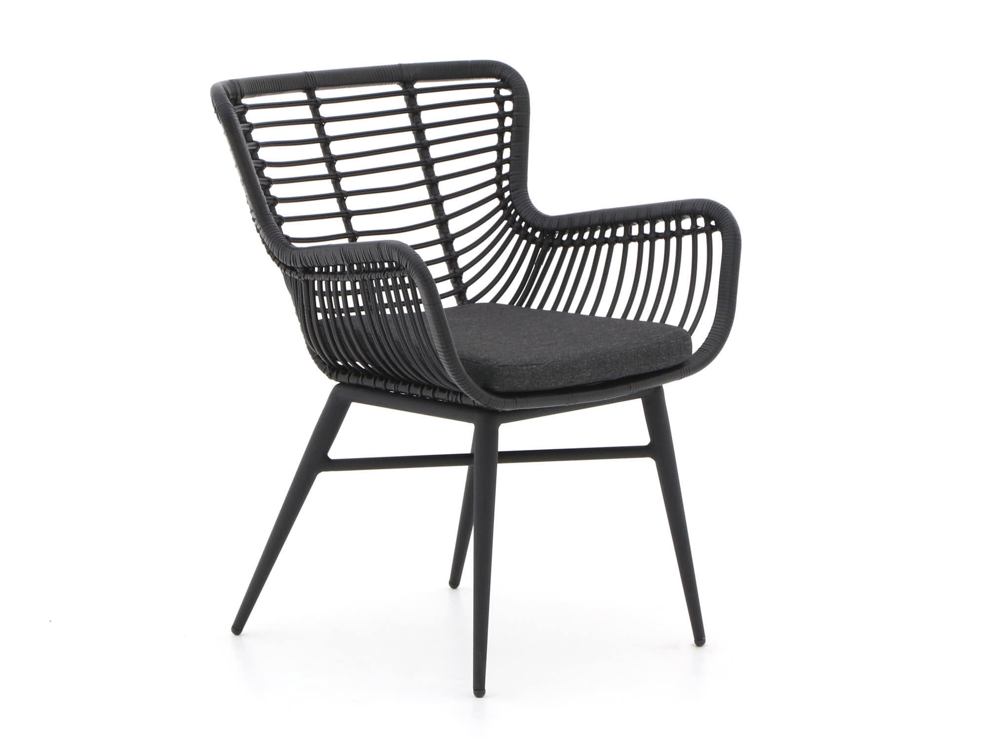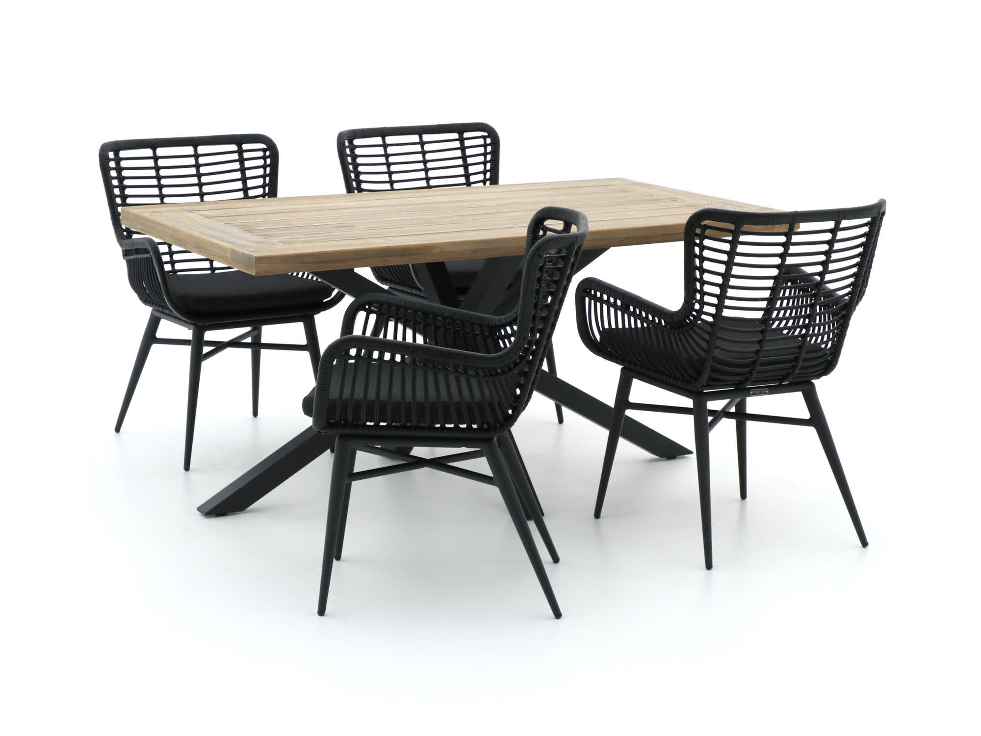 De Intenso Asti/Montorio dining tuinset is een stijlvolle toevoeging aan je tuin. Deze 5-delige set, uitgevoerd in een chique zwarte kleur met bijpassende kussens, biedt plaats aan vier personen. Het teakhouten tafelblad straalt natuurlijke elegantie uit en is bestand tegen alle weersomstandigheden, waardoor je jarenlang plezier hebt van deze set. De stoelen zijn gemaakt van handgevlochten wicker, wat niet alleen vochtbestendig is, maar ook licht van gewicht, zodat je ze gemakkelijk kunt verplaatsen. Geniet van lange zomerse avonden met vrienden en familie aan deze prachtige tuinset. En wie weet, misschien wordt deze set wel het nieuwe middelpunt van je tuinfeestjes!