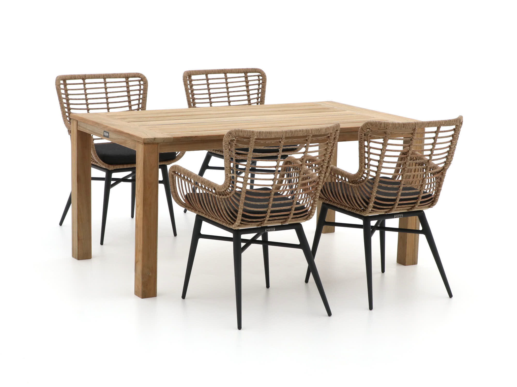 • Wicker zitting: Vochtbestendig en licht materiaal, dus de stoelen zitten comfortabel en til je eenvoudig een stukje opzij.