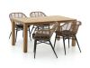 De Intenso Azora/ROUGH-S dining tuinset is een stijlvolle en praktische keuze voor jouw tuin. Deze 5-delige set, inclusief comfortabele kussens, biedt plaats aan vier personen en is perfect voor gezellige etentjes in de buitenlucht. Het teakhouten tafelblad en onderstel zijn bestand tegen alle weersomstandigheden, waardoor je jarenlang plezier hebt van deze set. De stoelen zijn gemaakt van handgevlochten wicker, wat niet alleen vochtbestendig is, maar ook licht van gewicht en makkelijk te verplaatsen. Geniet van een ontspannen diner met vrienden of familie in je eigen tuin – deze set maakt het mogelijk. En zeg nou zelf, wat is er fijner dan een zomerse avond aan je eigen tuintafel doorbrengen?