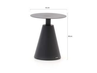 Het tafelblad is afgewerkt met een sterke poedercoating die beschermt tegen roest en verkleuring