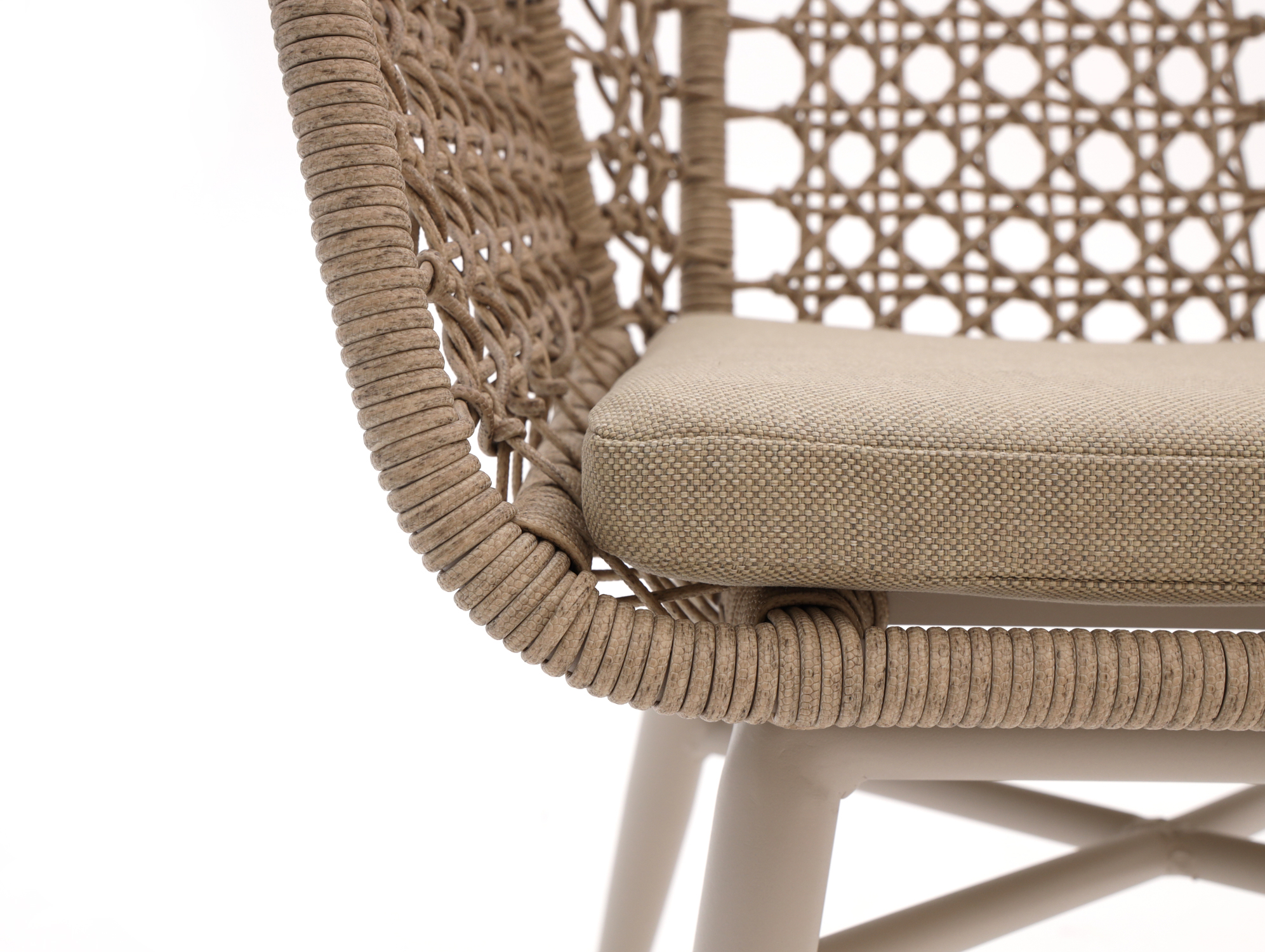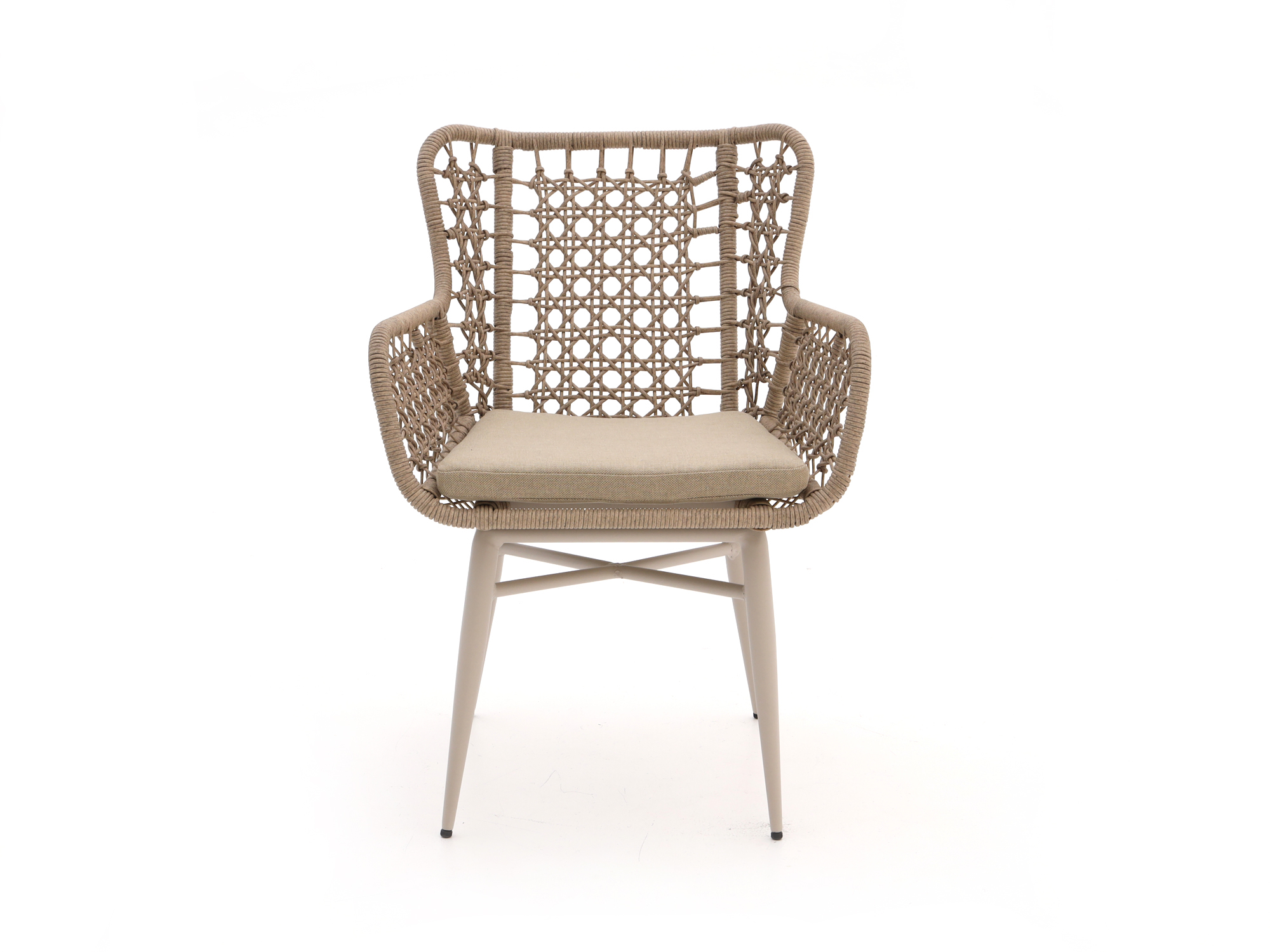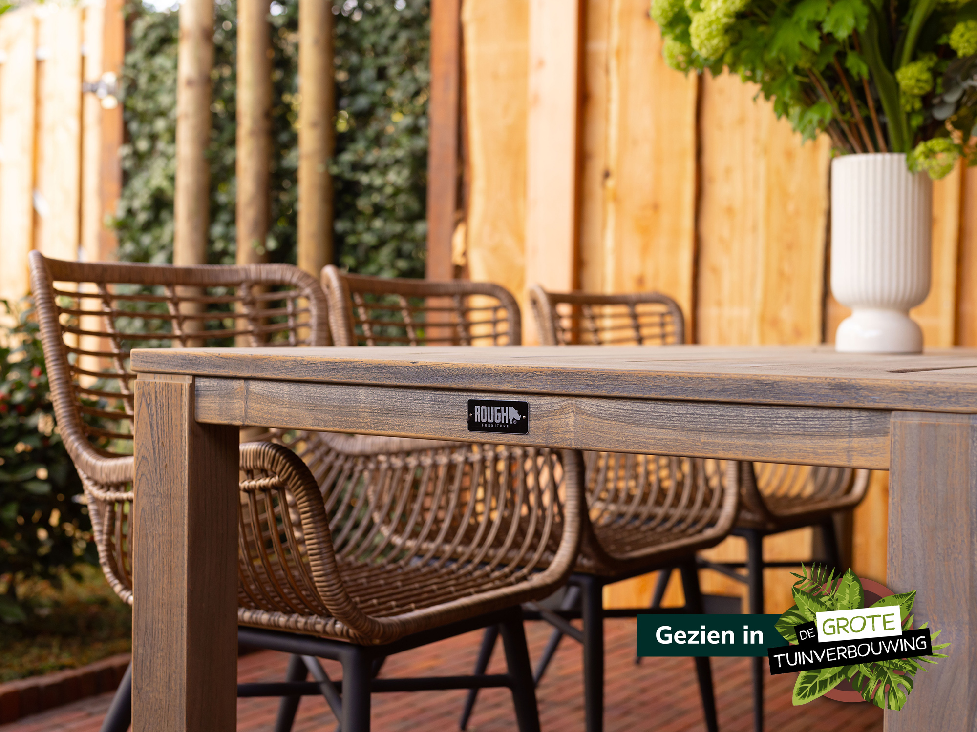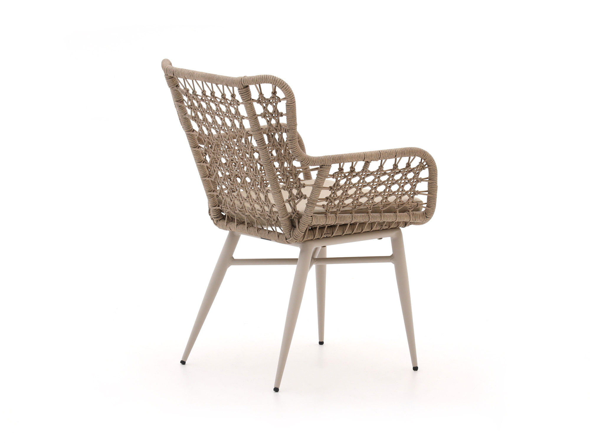 • Wicker zitting met kussens: Wicker is licht en vochtbestendig, in combinatie met de kussens zit je gewoon relaxed langdurig na het eten.