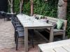 • Teakhouten tafelblad: Teakhout is een sterk natuurproduct dat tegen alle weersomstandigheden kan, zo kan de tafel gewoon buiten blijven staan.