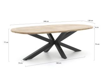 Ruime tafel voor zes personen: De ovale vorm maakt het eenvoudig om extra stoelen aan te schuiven, zonder dat iemand een hoek in de zij krijgt. Ideaal voor lange avonden tafelen.