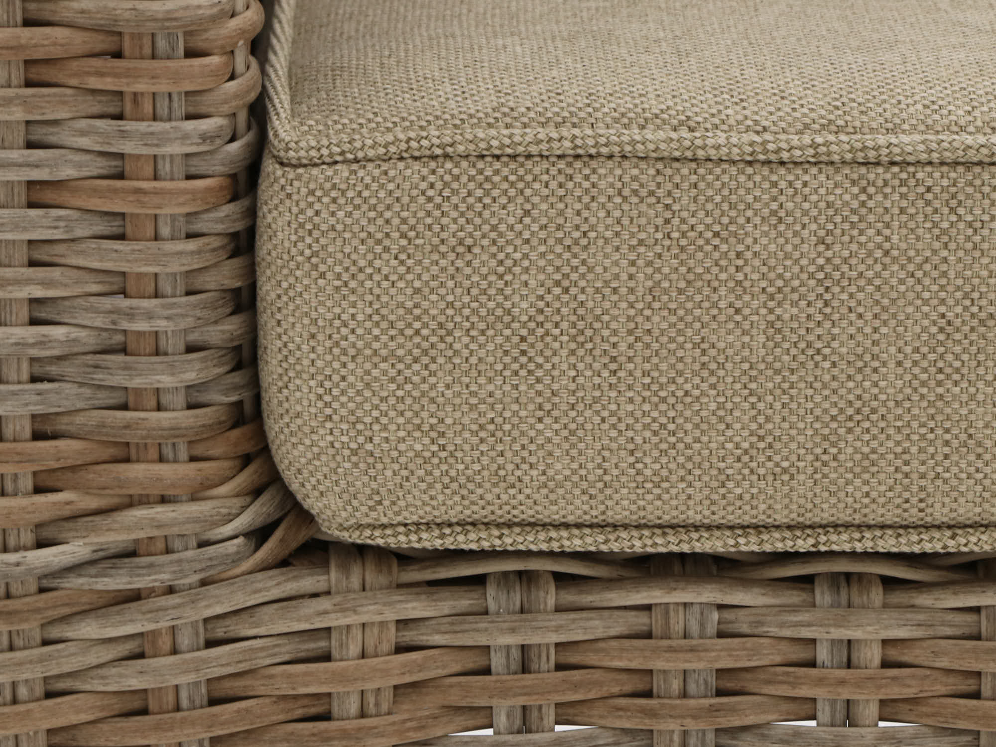 Wicker stoelframe: Het handgevlochten wicker is vochtbestendig en geeft elke stoel een unieke uitstraling. Ideaal voor buiten, want je hoeft je geen zorgen te maken over een regenbui.
