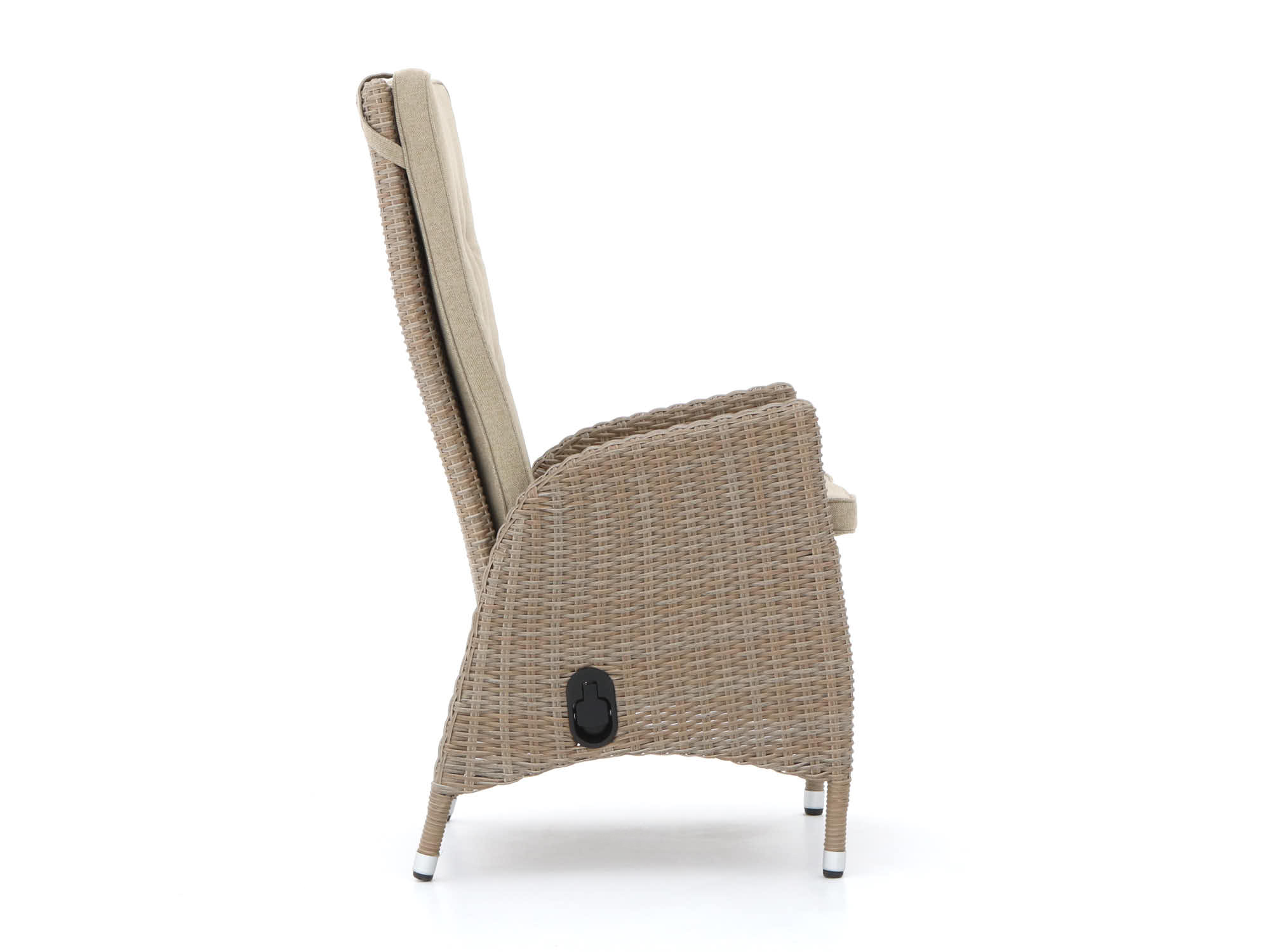 Handgevlochten wicker: De stoelen zijn gemaakt van strak afgewerkt wicker, wat niet alleen stijlvol is, maar ook vochtbestendig. Geen zorgen over losse draden of verkleuring door de zon.