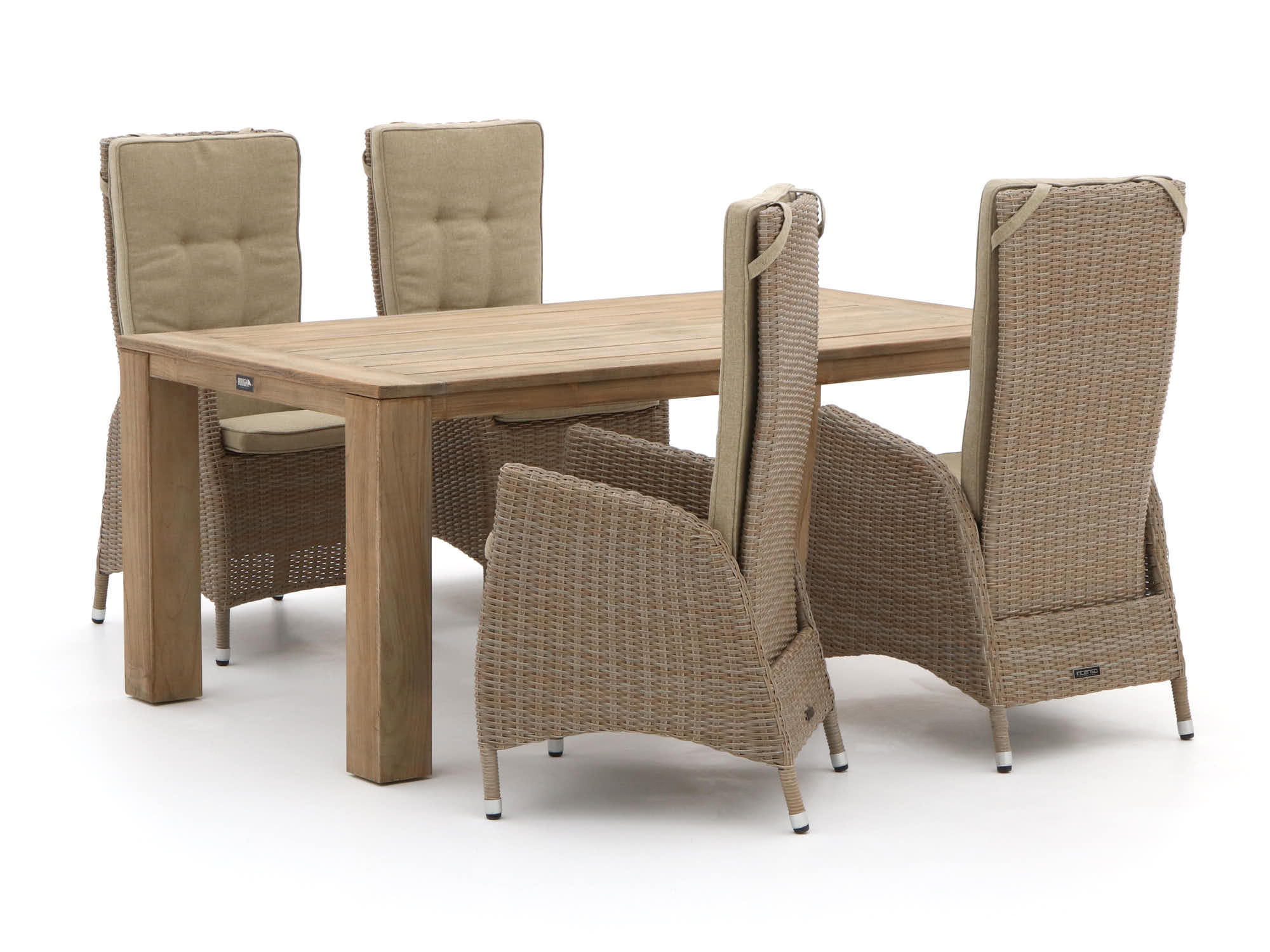 Met de Intenso Fabrizi/ROUGH-X dining tuinset haal je niet zomaar een tuinset in huis, maar een plek waar je met vrienden en familie kunt genieten van lange zomeravonden. Deze 5-delige set, met zijn warme Kubu-kleur en comfortabele zandkleurige kussens, nodigt uit om urenlang te tafelen. De stoelen zijn verstelbaar, zodat je na het eten heerlijk achterover kunt leunen. Het teakhouten tafelblad is niet alleen een lust voor het oog, maar ook bestand tegen alle weersomstandigheden. Zo blijft je tuinset er jaar na jaar prachtig uitzien, zonder dat je er veel omkijken naar hebt.