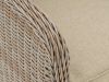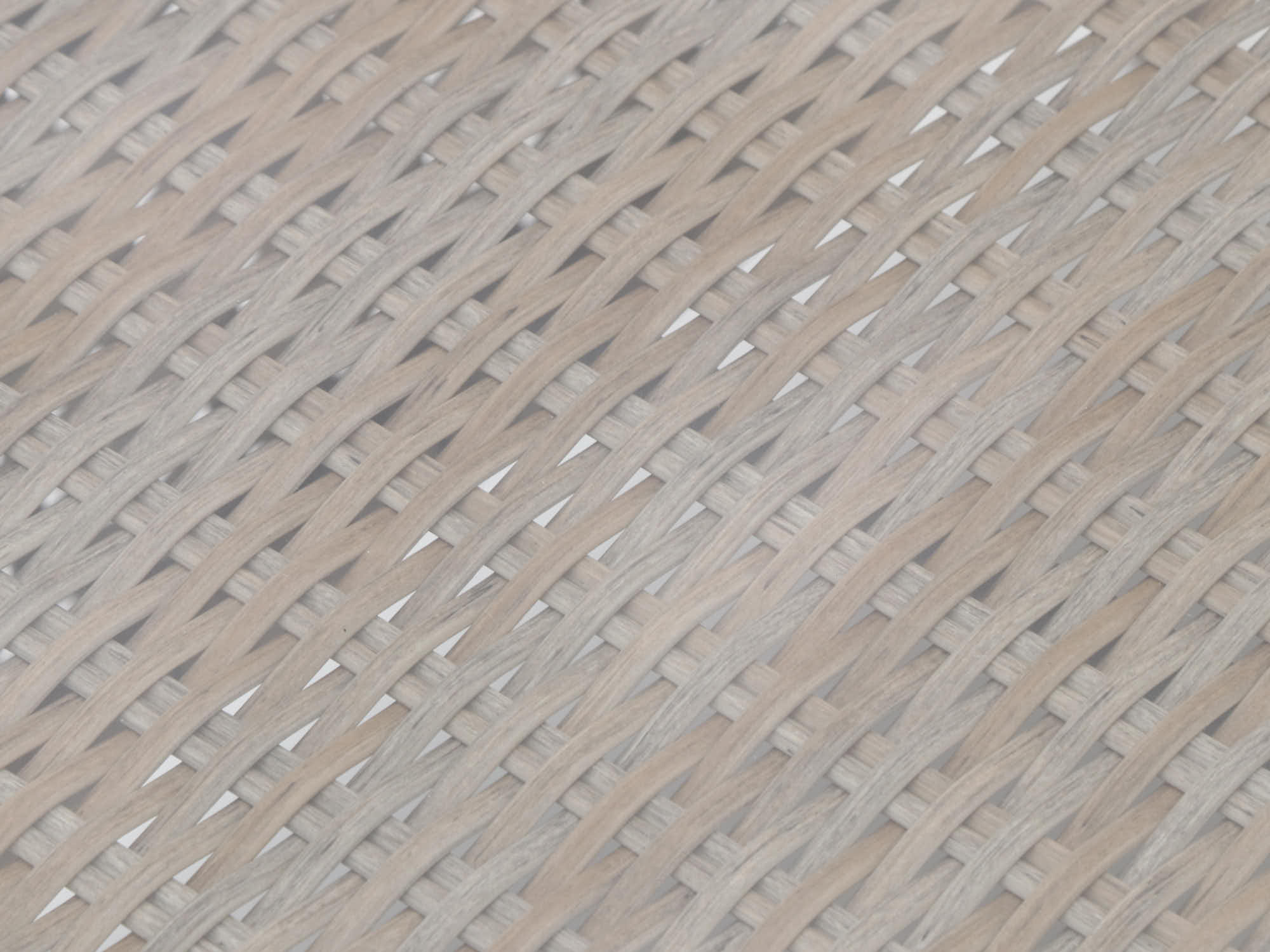 Handgevlochten wicker: Dit materiaal is niet alleen strak afgewerkt en vochtbestendig, maar ook licht van gewicht. Hierdoor kun je de set eenvoudig verplaatsen en aanpassen aan je wensen.