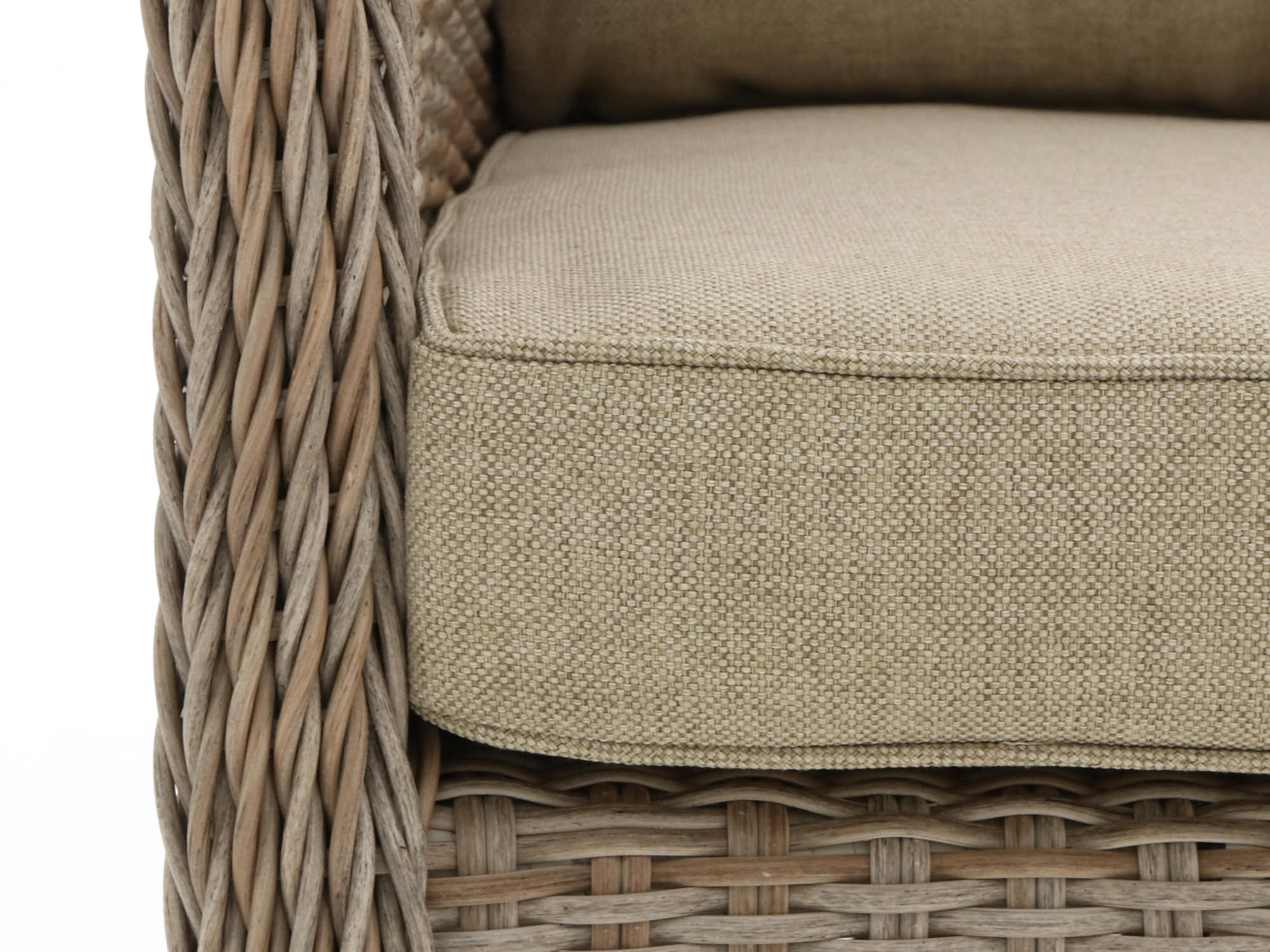 Inclusief kussens in zandkleur: De zachte kussens zorgen voor extra comfort en zijn afritsbaar, waardoor ze makkelijk te reinigen zijn. Zo blijft je loungeset er altijd fris en uitnodigend uitzien.