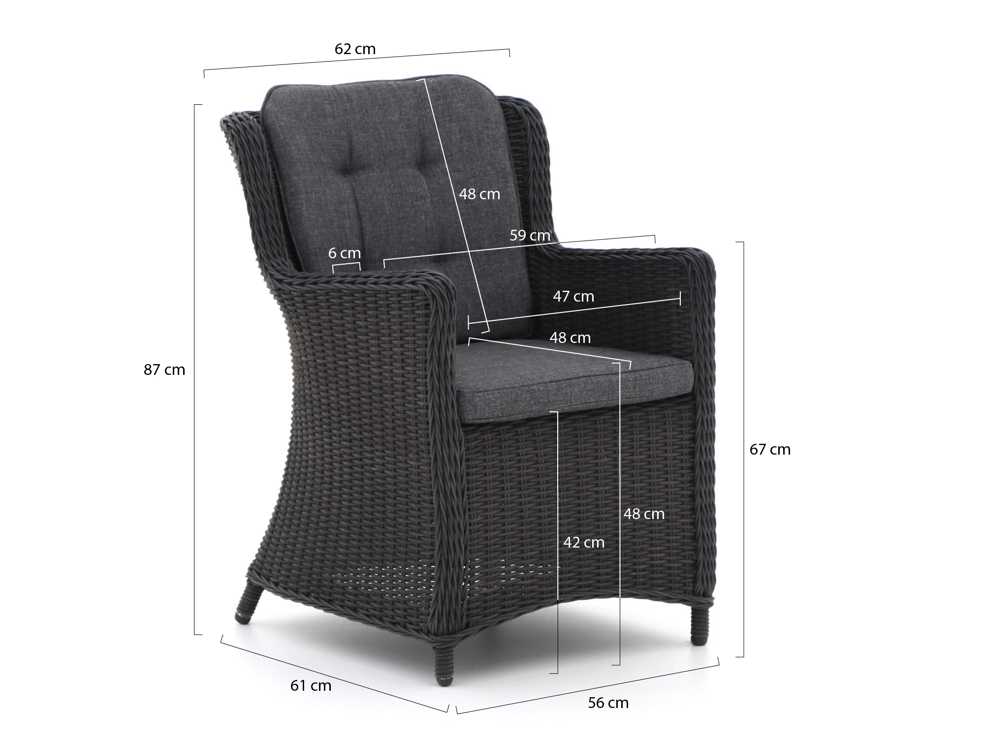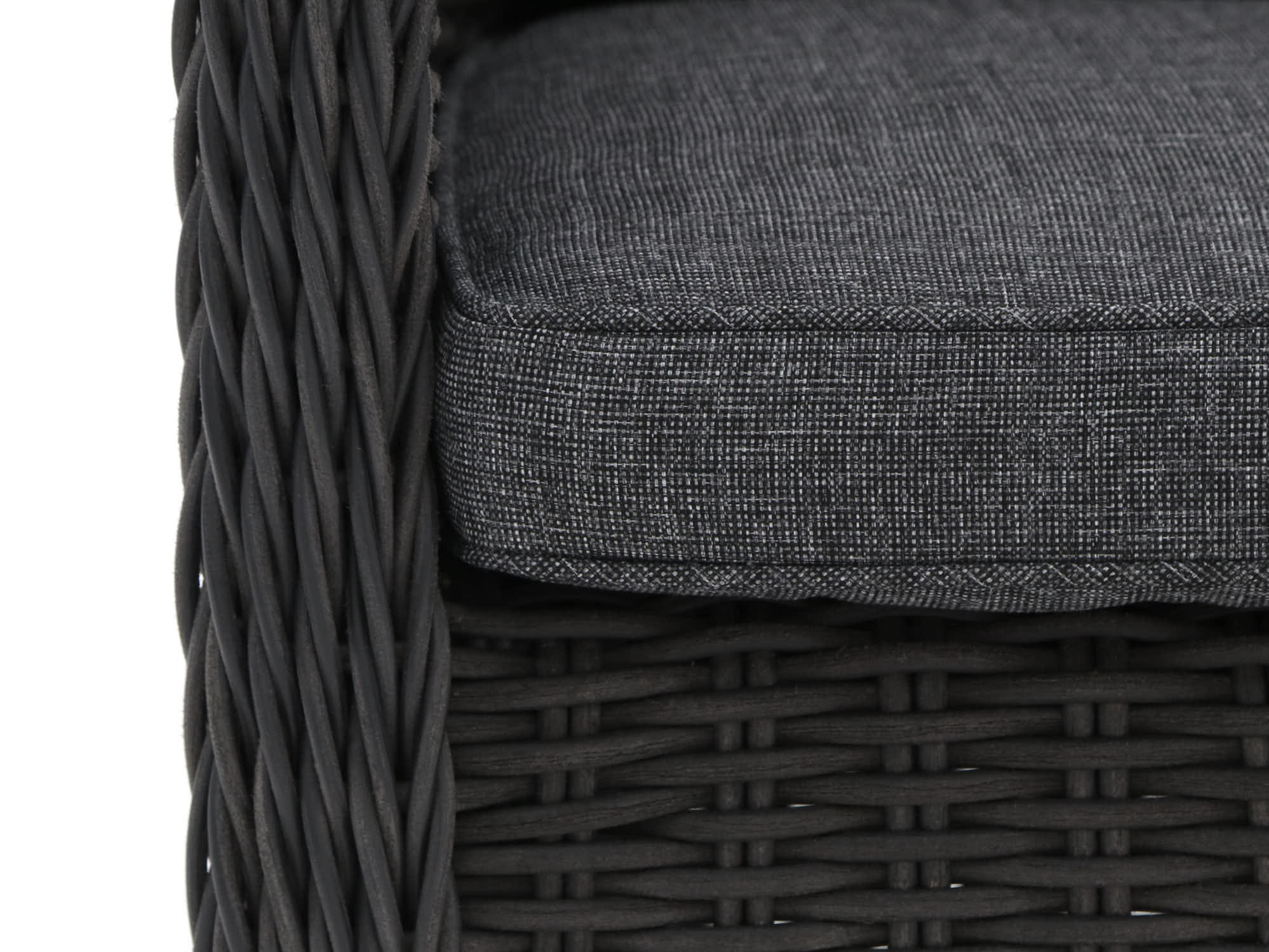 De Milano diningstoel is zeer populair vanwege het goede zitcomfort. De diningstoel heeft een rugleuning die licht hellend naar achteren loopt. De sterke kunststof vlechtdraad in de kleur Charcoal geeft deze heerlijk zittende diningstoel een warme uitstraling. Dit alles in combinatie met een rug- en zitkussen zorgt voor een optimaal zitcomfort. Het zitkussen is afritsbaar dus indien noodzakelijk, te wassen op max. 30 graden.