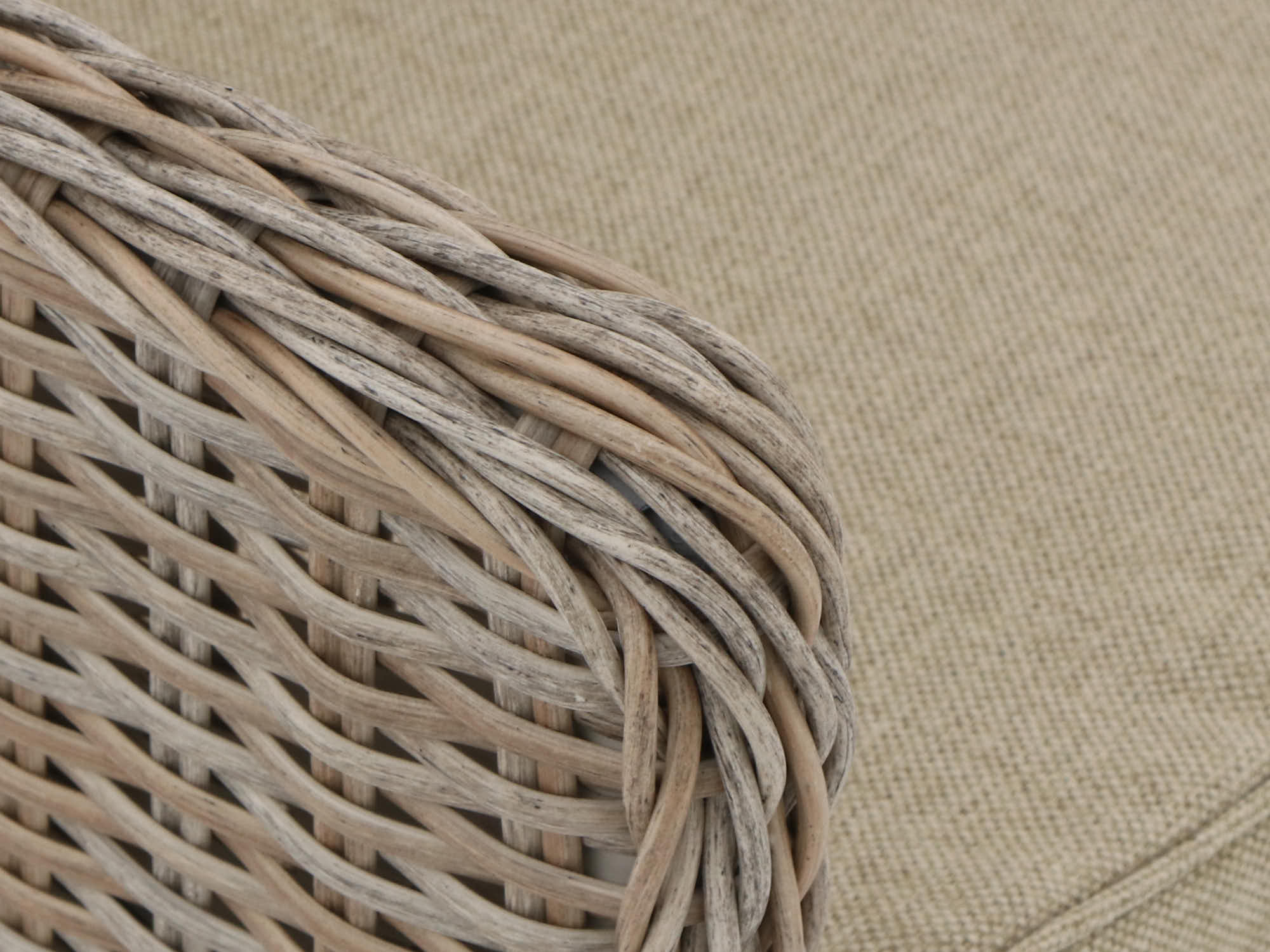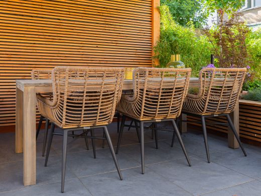 Vochtbestendig wicker: De stoelen zijn gemaakt van handgevlochten wicker, dat strak is afgewerkt en vochtbestendig is. Dit materiaal blijft netjes zonder loshangende draden en is licht van gewicht, dus makkelijk te verplaatsen.