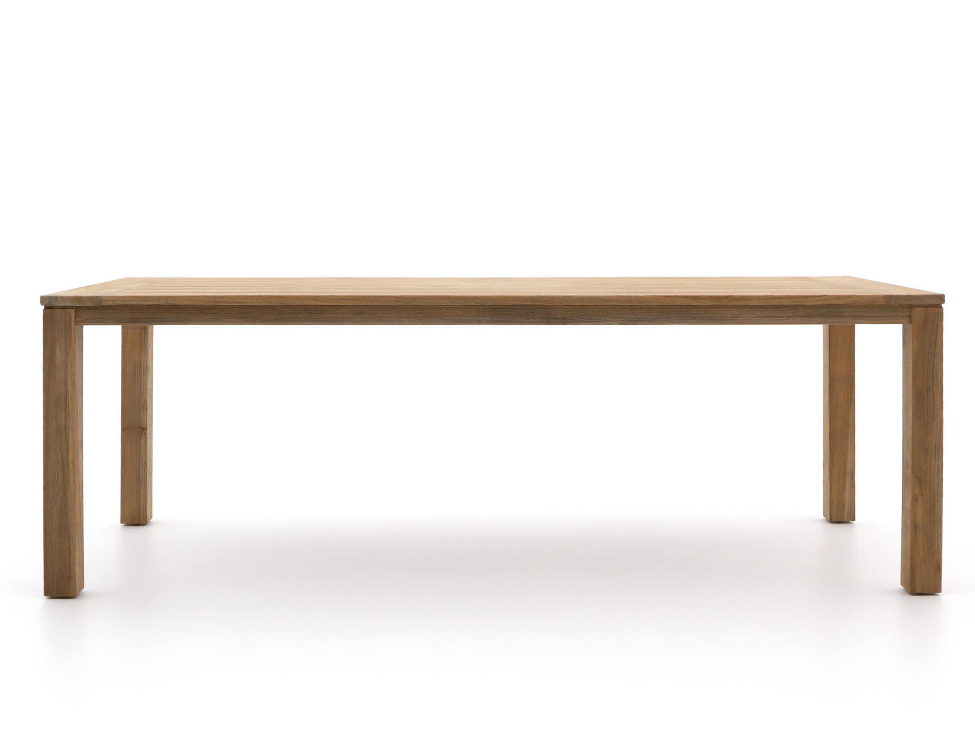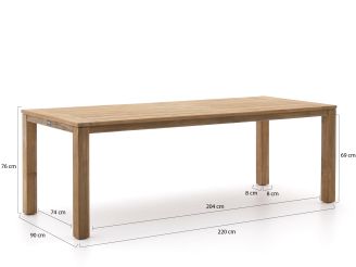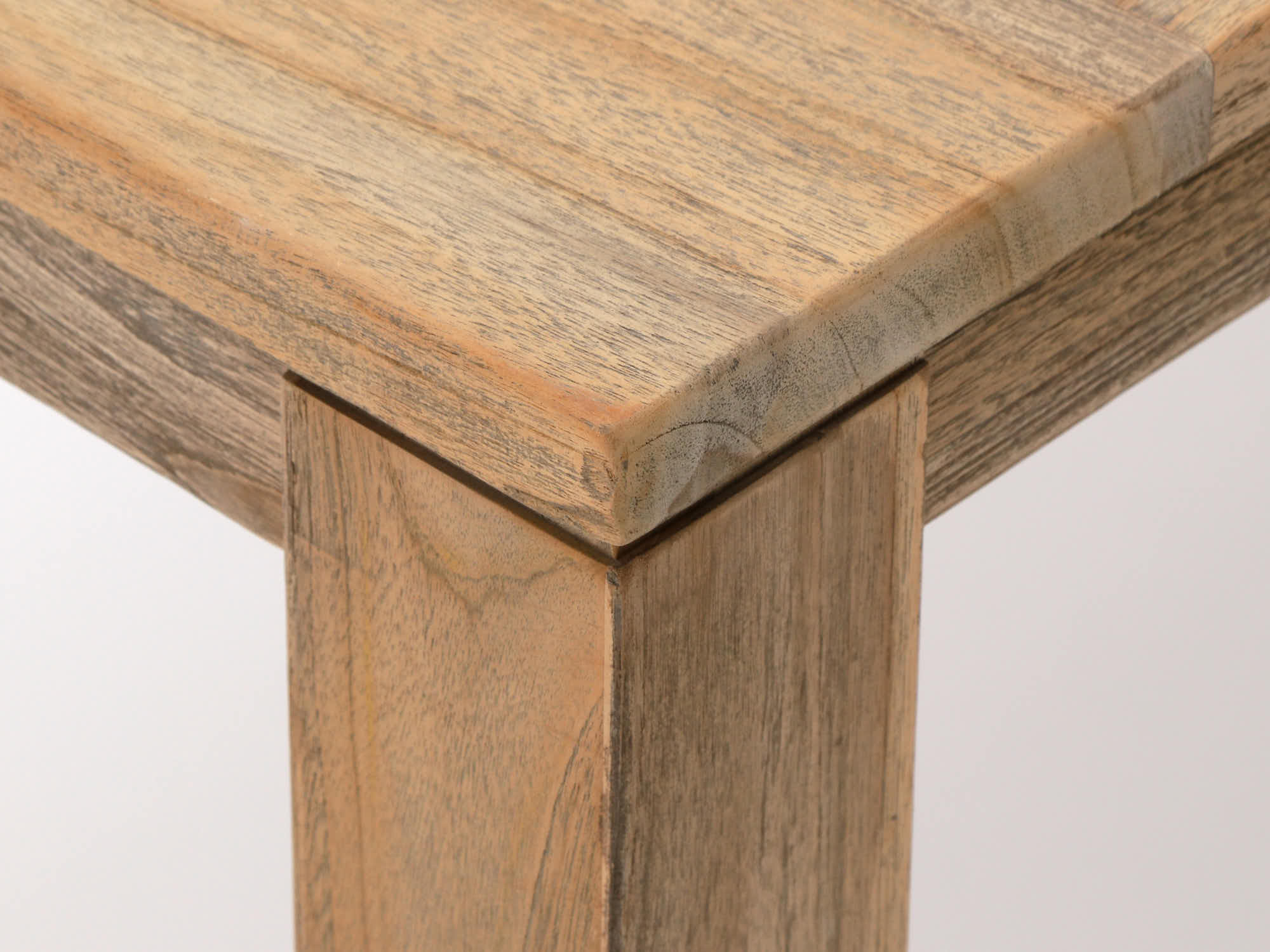 Teakhouten tafelblad: Het teakhout is bestand tegen alle weersomstandigheden en biedt jarenlang plezier. Het heeft een stevige constructie en is netjes afgewerkt zonder splinters.