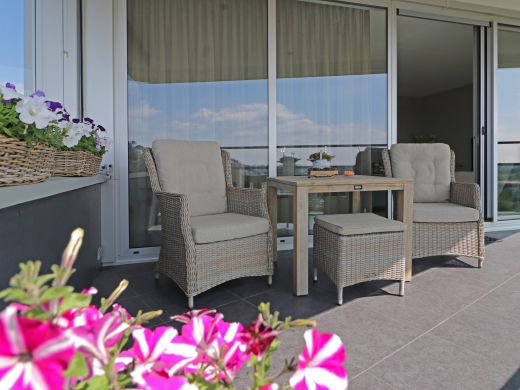 Wil je je tuinset extra beschermen tegen water en vuil? Dan kun je een beschermende laag aanbrengen met onze Kees Smit Teak & Hardhout shield voor het teakhouten tafelblad en Kees Smit Multi-surface beschermer voor de wicker zitting. Zo blijft je tuinset langer mooi en hoef je minder vaak schoon te maken. Dat is wel zo fijn!
