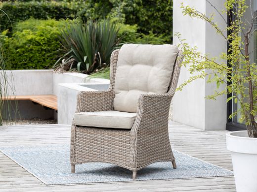 • Vochtbestendig wicker: Het handgevlochten wicker is strak afgewerkt en blijft netjes zonder loshangende draden. Ideaal voor buiten, want het is licht van gewicht en makkelijk te verplaatsen.
