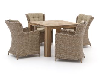 Als je tuinset vies is geworden, maak je deze eenvoudig schoon. Voor het teakhouten tafelblad gebruik je een emmer water en soda of keukenzout om vuil te verwijderen. Voor de wicker zittingen kun je een doek en wat groene zeep gebruiken. Dit is meestal voldoende om vuil en stof te verwijderen. Wij raden aan om je tuinset minstens twee keer per jaar grondig schoon te maken met een speciale reiniger. Voor het beste resultaat gebruik je dan onze Kees Smit Teak & Hardhout reiniger voor het tafelblad en Kees Smit Multi-surface reiniger voor de zittingen. Let op: gebruik géén hogedrukreiniger. Dit lijkt handig, maar kan het materiaal beschadigen.